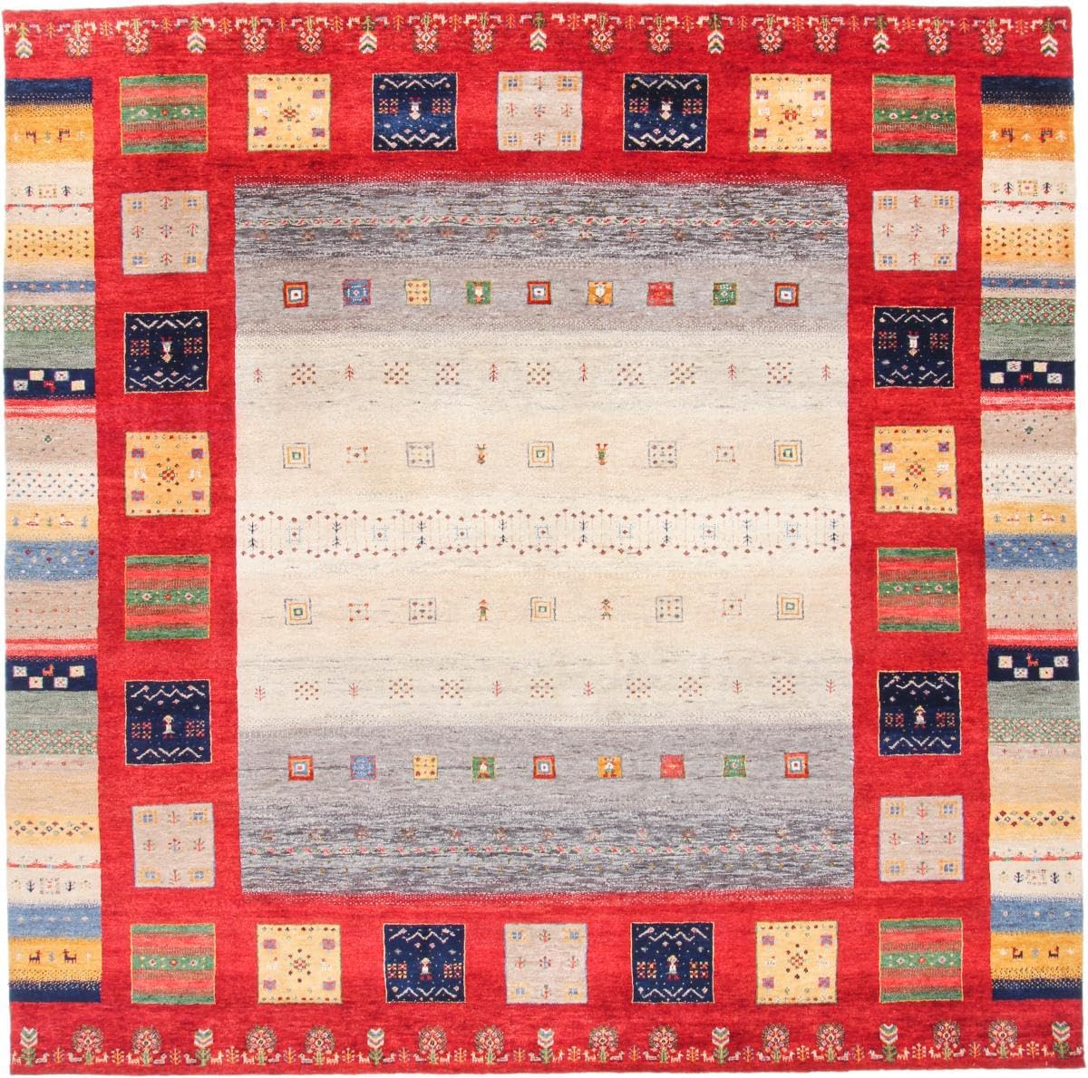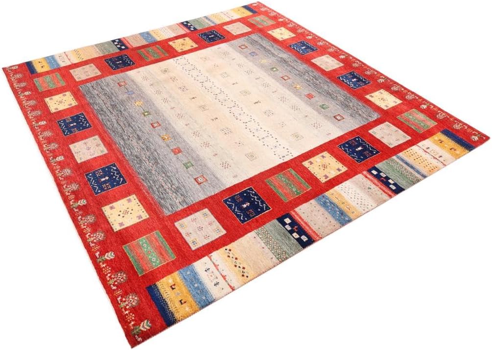 Top-Angebot: Nain Trading Gabbeh Loribaft 250 x 250 cm Hand-Knotted Modern Oriental Rug, Square Rug, India Wool