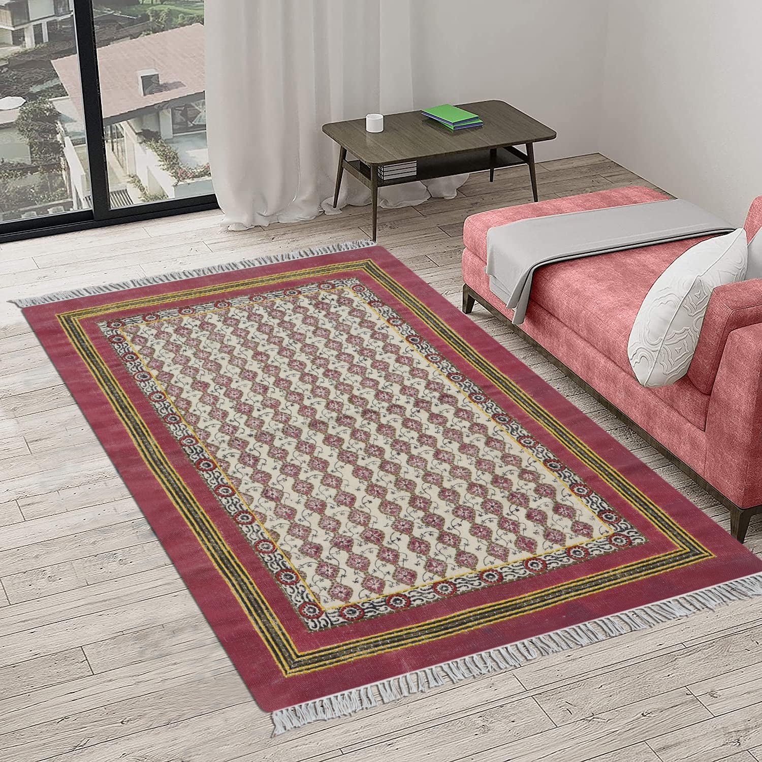 Empfehlung: CASAVANI Kilim Rug 12×15 Inch Washable Boho Rug Cotton Dhurrie Floral Indoor Outdoor Flat Weave Rugs for Large Area Living Room Bedroom Dining Table