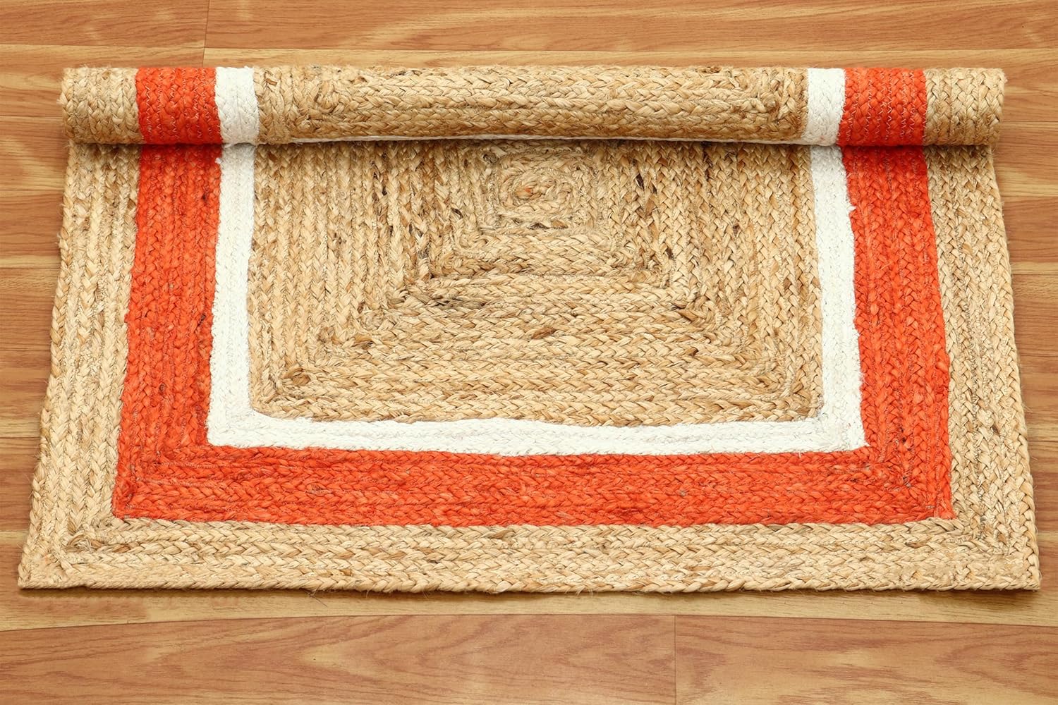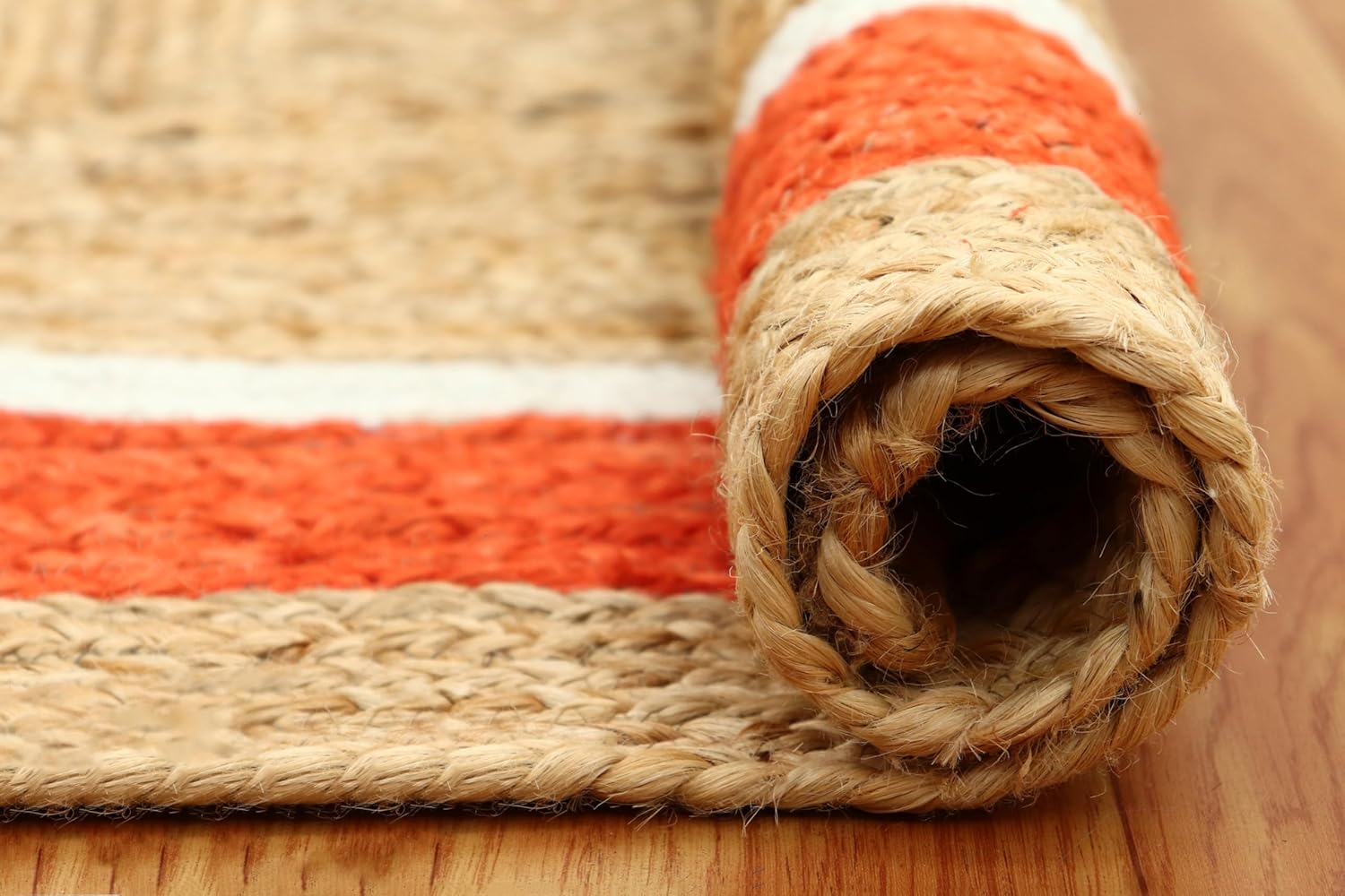 Empfehlung: CASAVANI – Kilim Area Rug, 10×14 Inch, Beige & Orange Hand Woven Jute Rug Indoor Outdoor Flat Weave Rug for Bedroom Dining Living Room