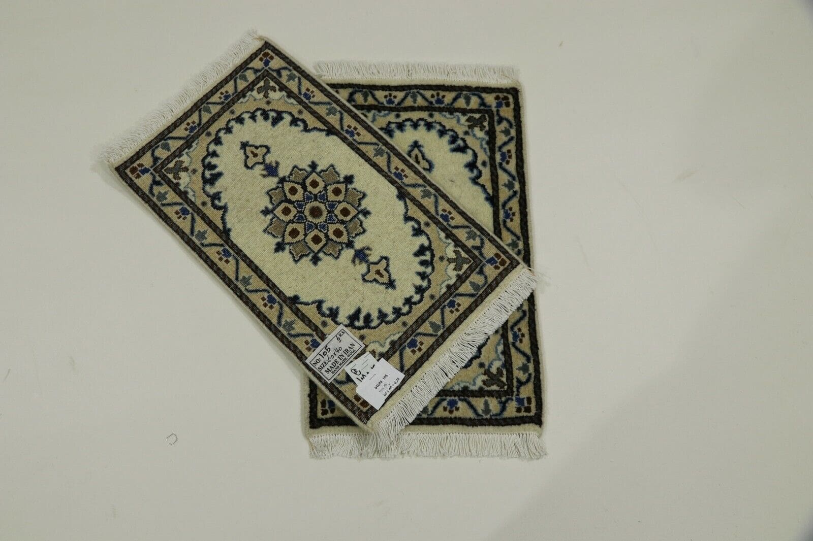 Handgeknüpfter Orientteppich Nain | Größe: 60 x 40 cm | Knotendichte: ca. 300.000 Knoten/m² | Material: 95% Schurwolle, 5% Seide | Zustand: Neu, sehr gut | Herkunft: Persien | Muster: Orientalisch, traditionell | Dicke: ca. 10 mm | Unikat mit Echtheitszertifikat | Gewicht: ca. 1 kg