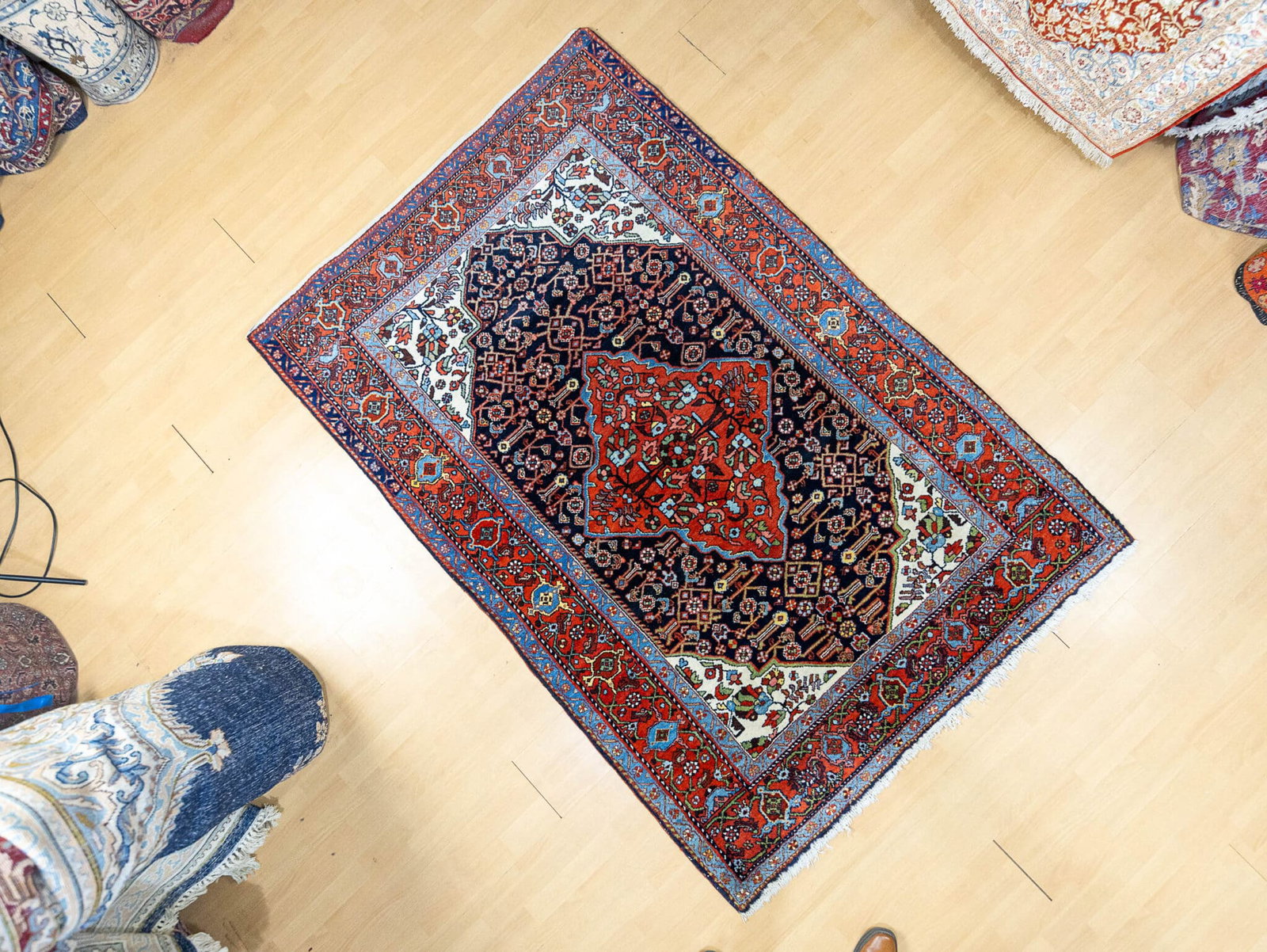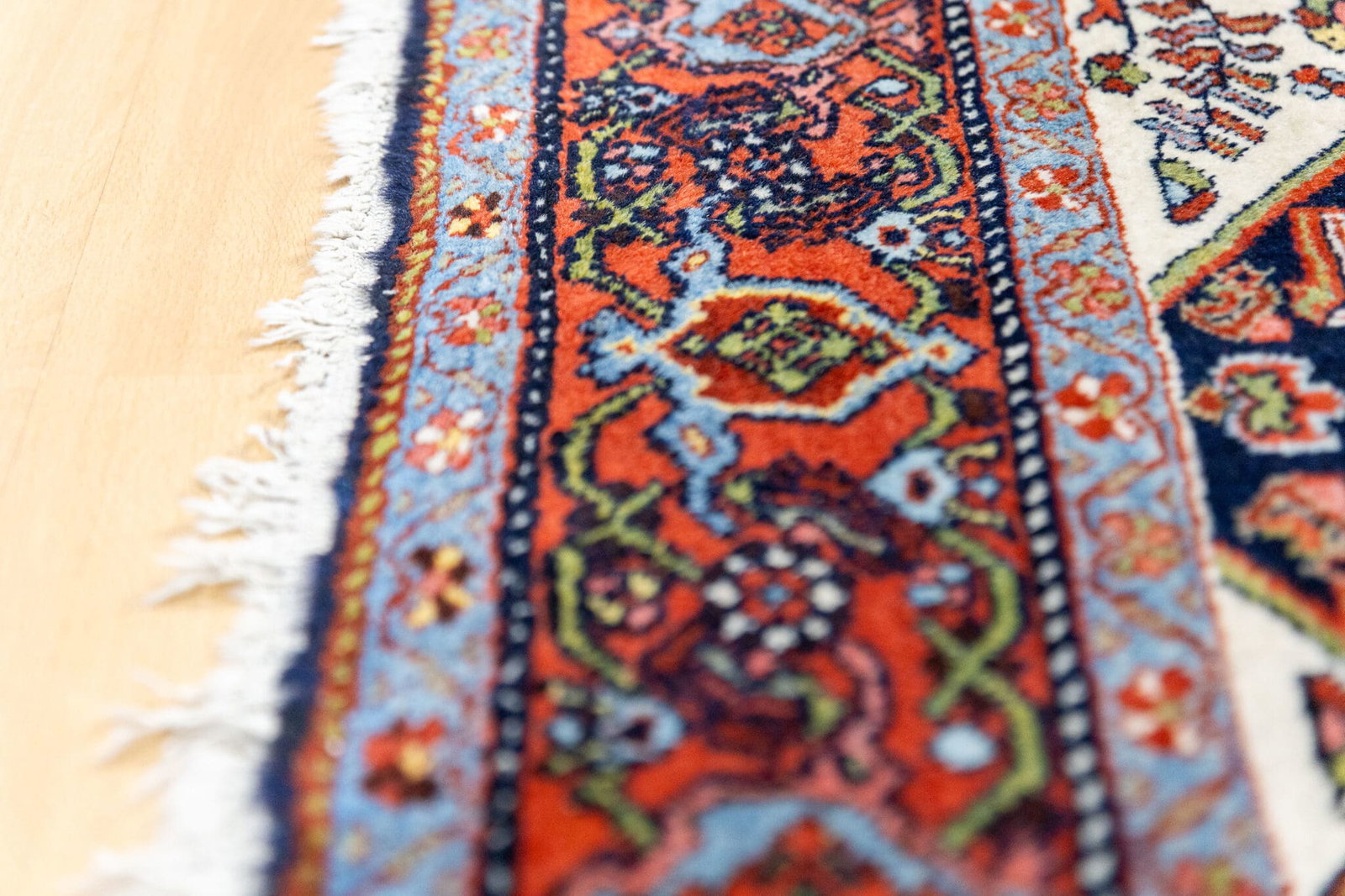 2556$Ursprünglicher Preis war: 2556$1059$Aktueller Preis ist: 1059$Handgeknüpfter Perserteppich Hamadan W1 (#484) | 207 x 141 cm | ca. 160.000 Knoten/m² | Farbfroh mit Naturfarben | Semi-Antik | Wunderschöner Abrasch | Top Zustand | Wolle auf Baumwolle | Herkunft: Iran