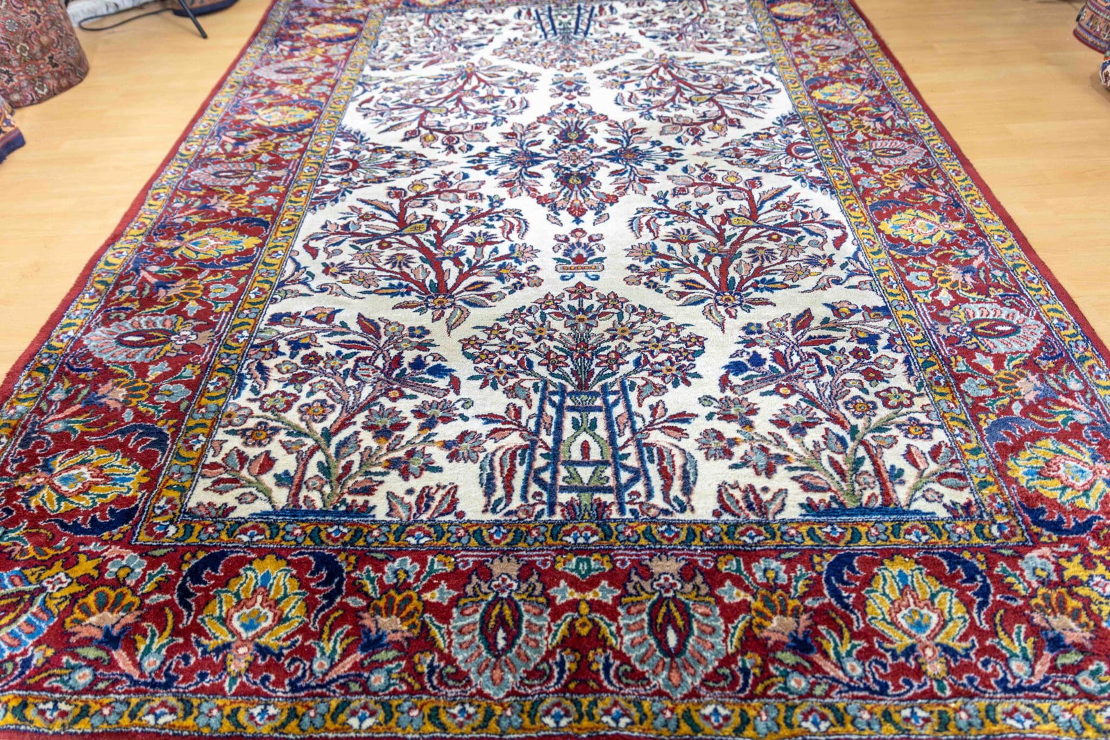 Ca. 250.000 Knoten/m², typisch für fein geknüpfte Indo Sarough Teppiche.