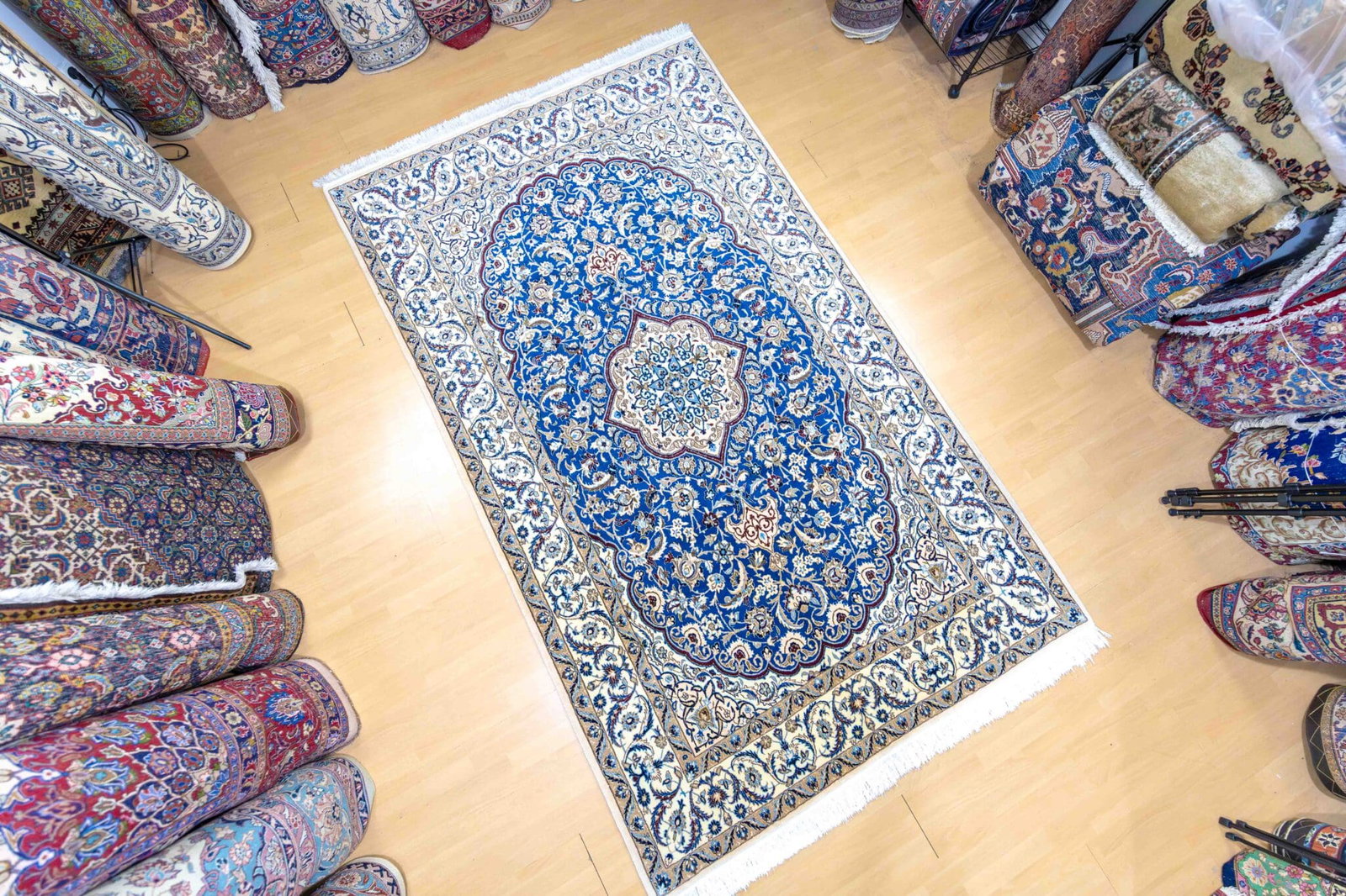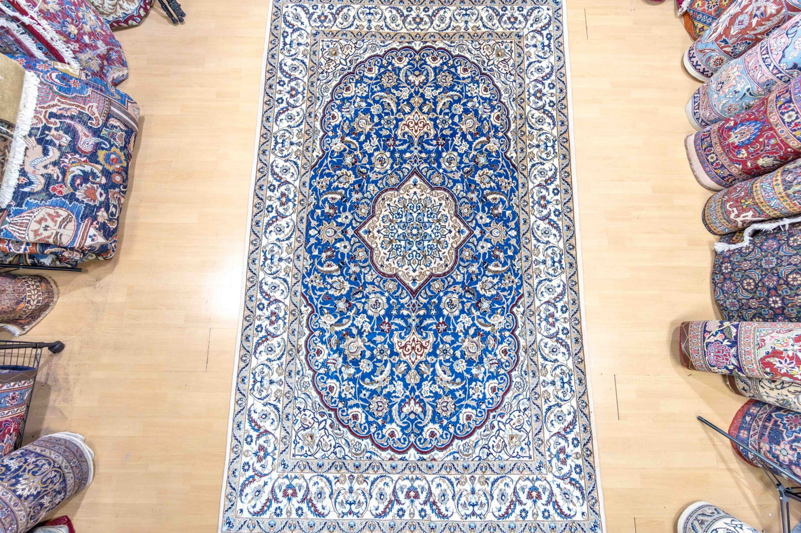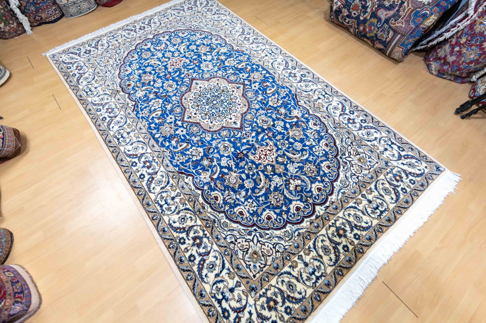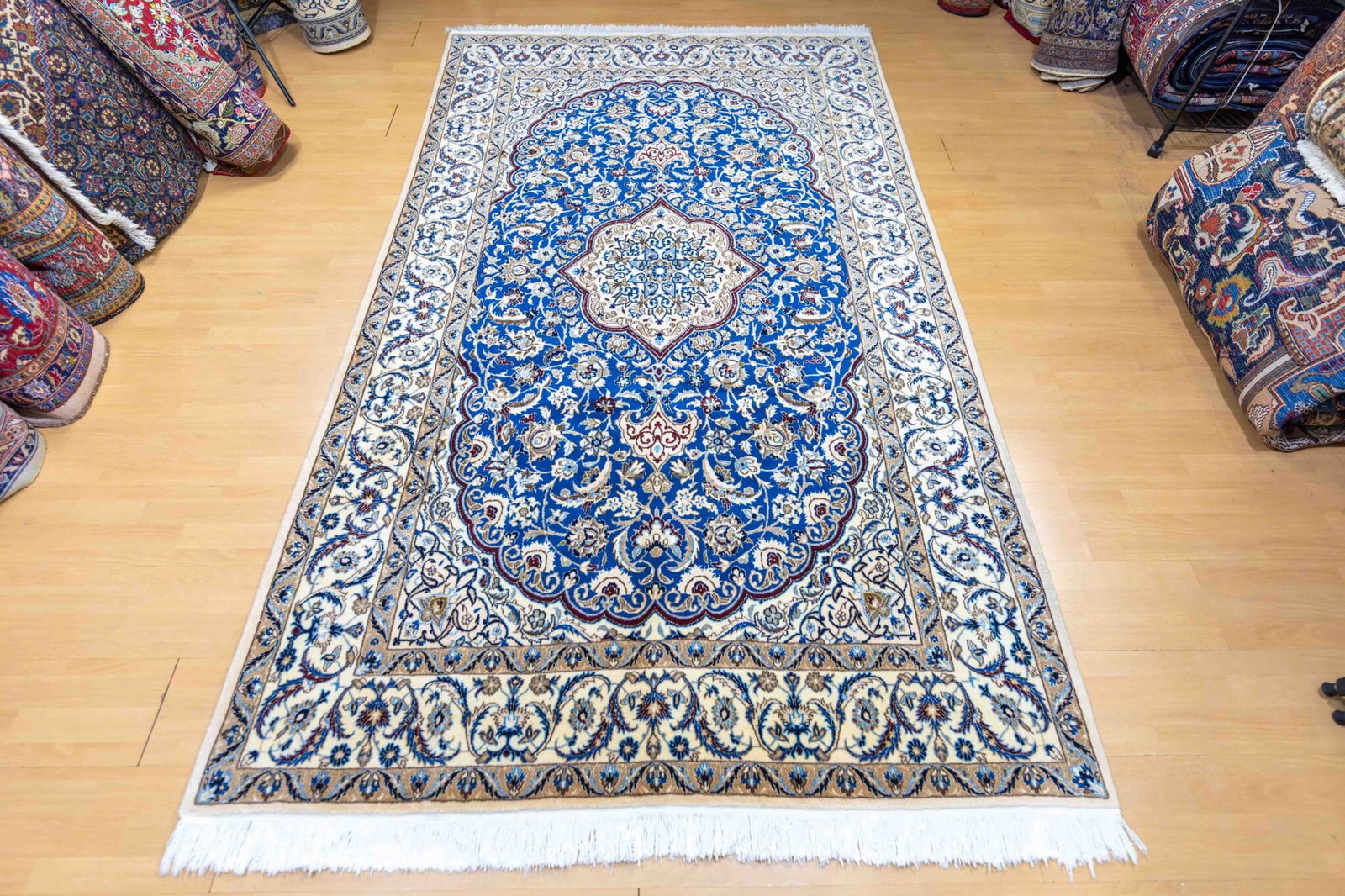 273×164 cm Nain 9La Top Perserteppich „Zentralmedaillon – Blauton“ | 4,47 m² | 40 Raj | 360.000 Knoten/m² | Hochwertige Schurwolle W1(#424)