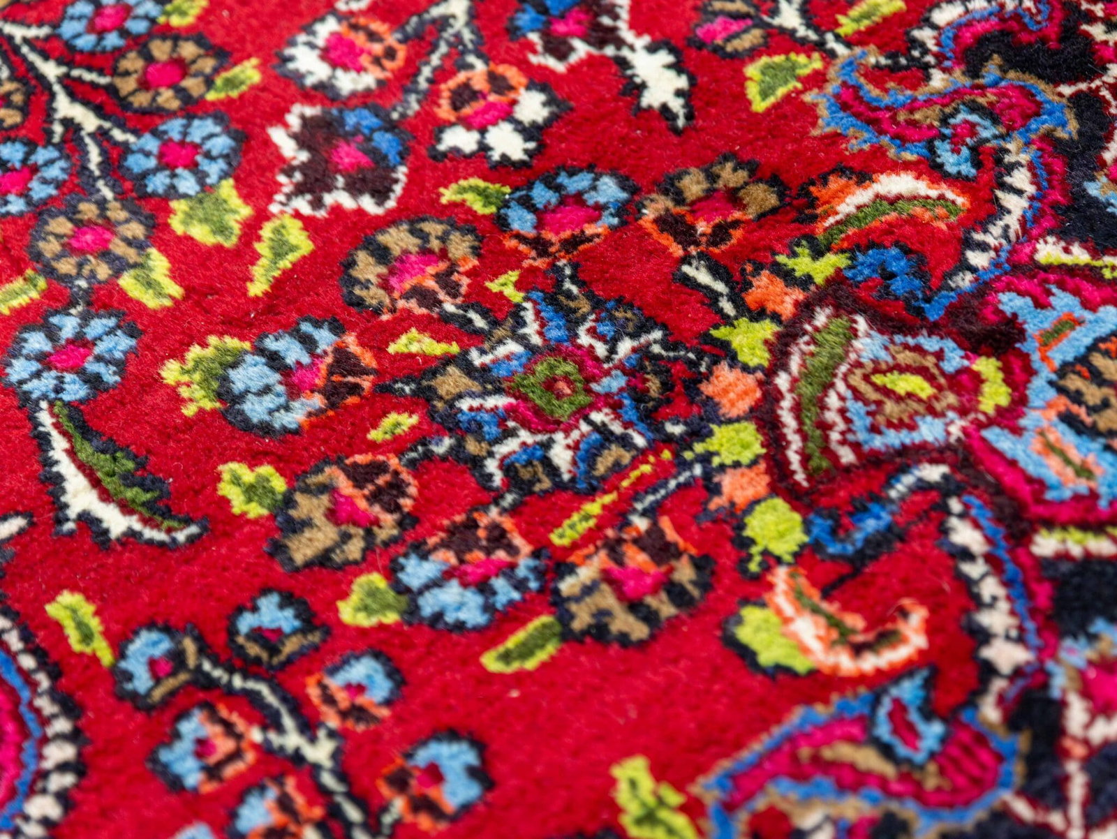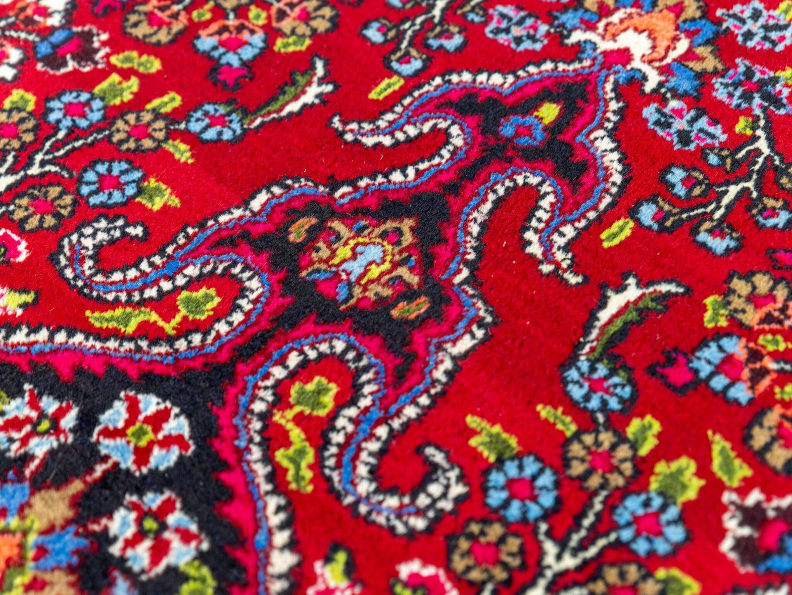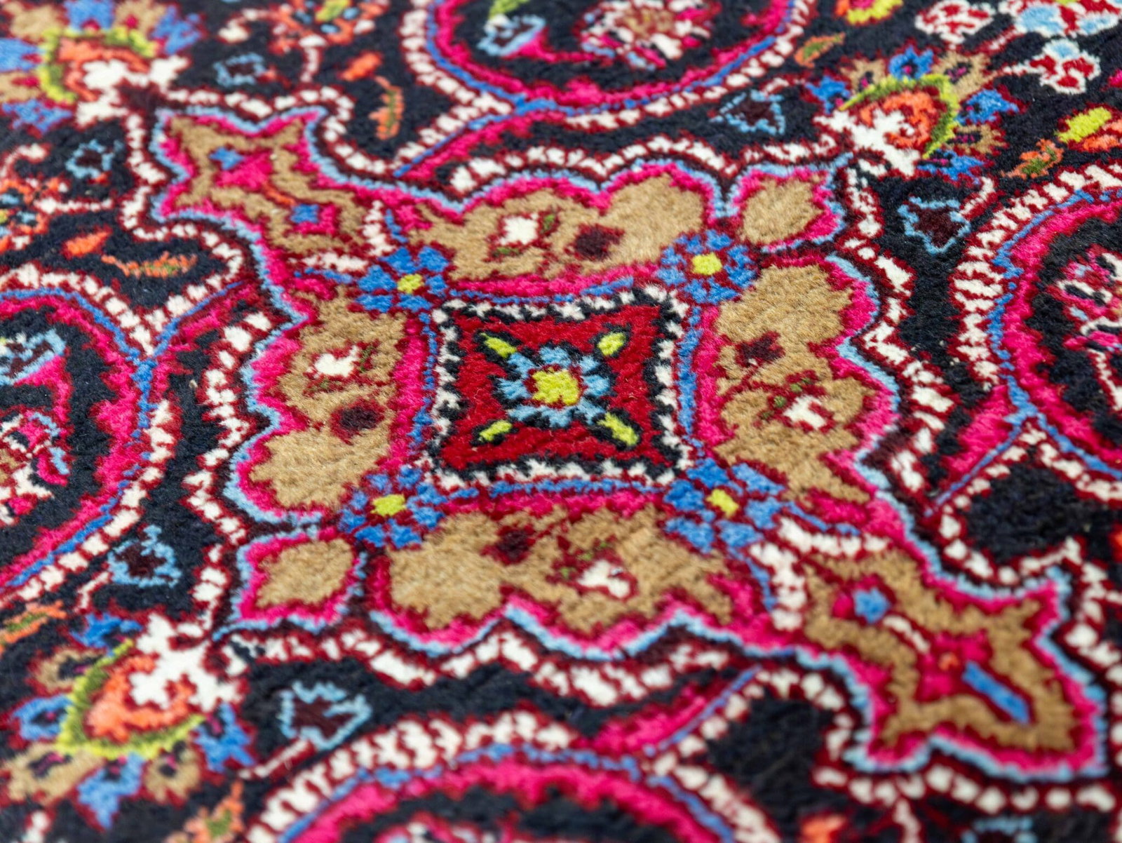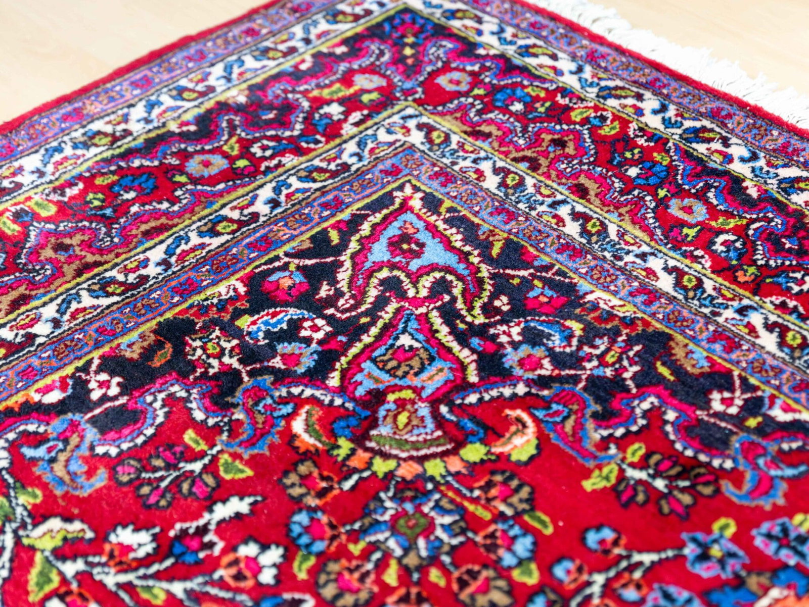 Die Knotendichte von ca. 140.000 Knoten pro Quadratmeter steht für eine sorgfältige handwerkliche Qualität. Sie ermöglicht eine klare Musterzeichnung und verleiht dem Teppich zugleich eine hohe Strapazierfähigkeit. Sabzewar-Teppiche sind für ihre Widerstandsfähigkeit bekannt und eignen sich sowohl für repräsentative Räume als auch für den täglichen Gebrauch.