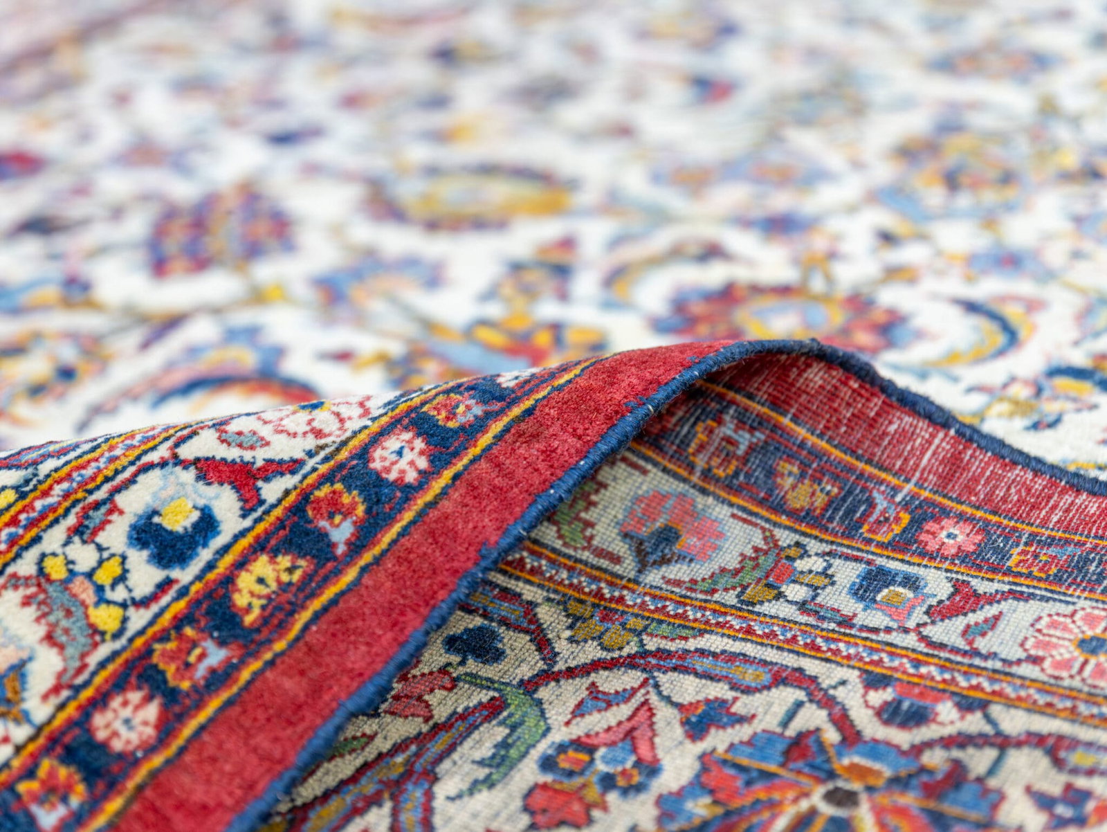 Dieses Stück ist ein echter, originaler iranischer Kashan – kein Replika. Die Echtheit wird von uns zertifiziert und bestätigt.