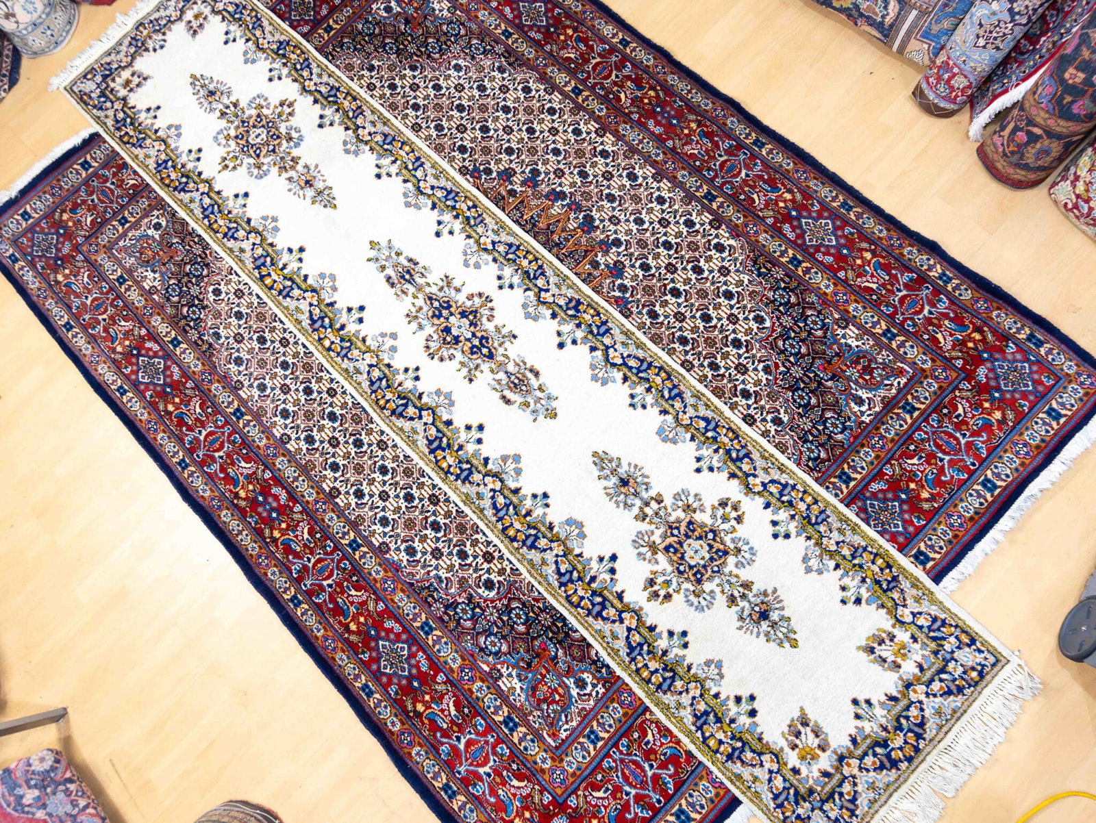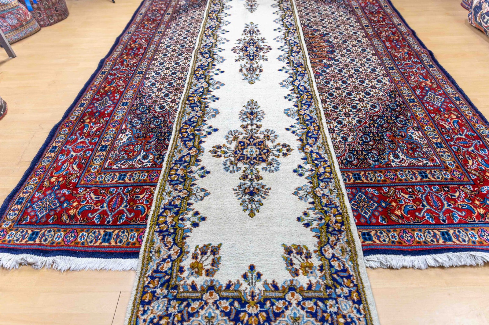 Der Läufer zeigt ein klassisches und zeitloses persisches Design mit fein ausgearbeiteten Ornamenten und einer harmonischen Bordüre. Dieses traditionelle Motiv gehört zu den bekannten Klassikern der persischen Teppichkunst und passt sowohl zu klassischen als auch zu modernen Einrichtungsstilen.