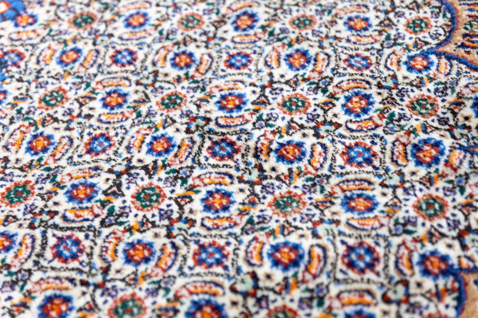 Der Teppich stammt aus der Region Moud im Nordosten Irans, nahe der historischen Stadt Birjand. Moud-Teppiche gehören zu den bekannten klassischen Perserteppichen und werden seit Generationen von erfahrenen Teppichknüpfern hergestellt. Die Teppiche dieser Region sind für ihre feine Knotentechnik, harmonischen Farbkompositionen und eleganten Muster weltweit geschätzt.