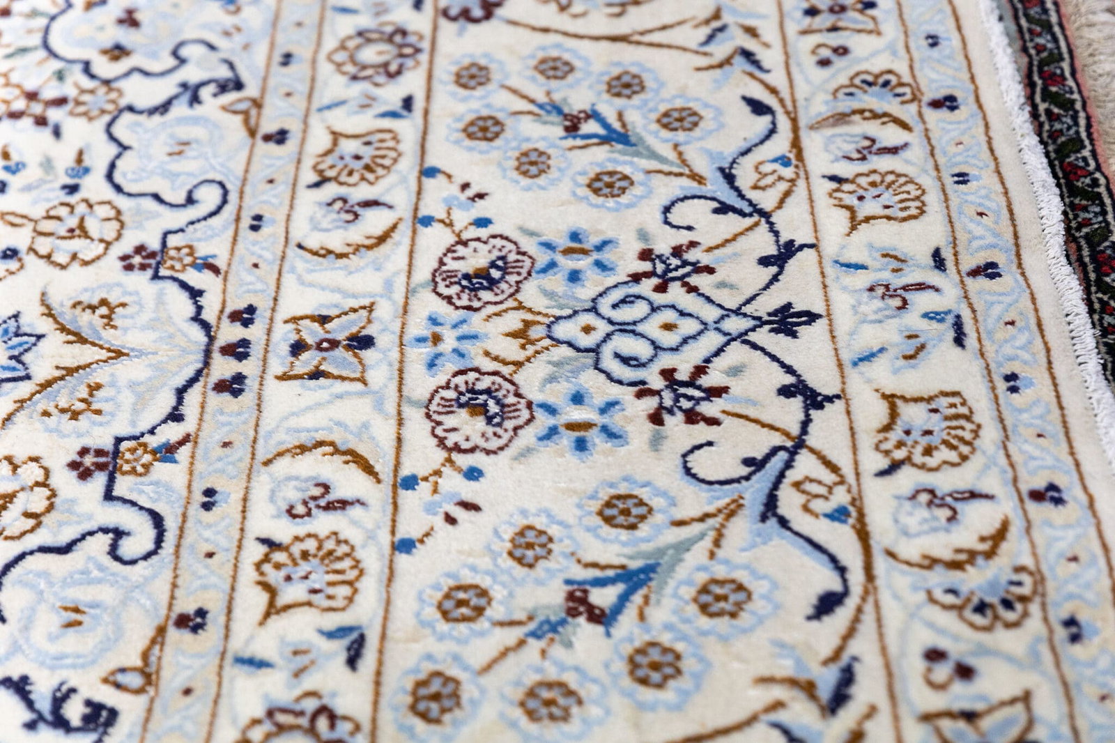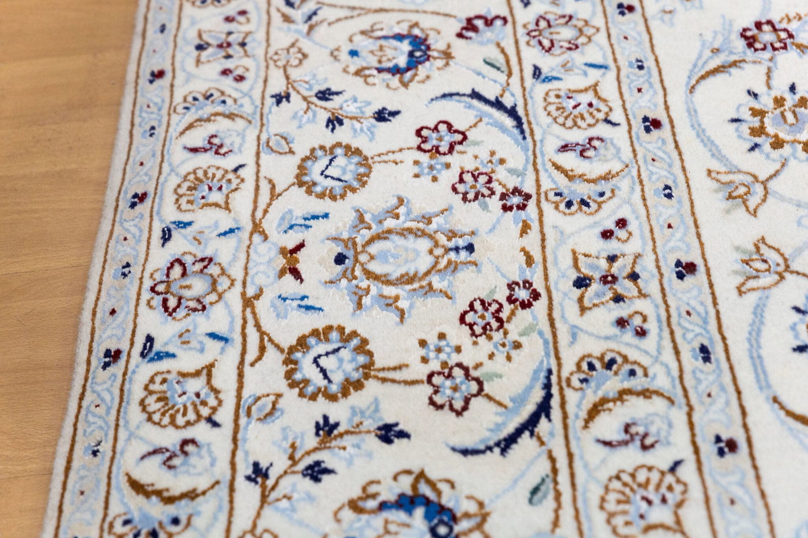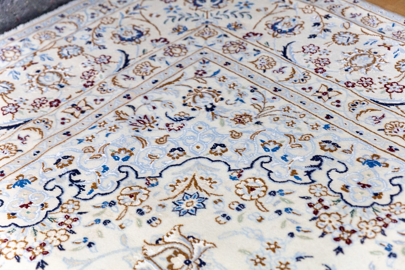Der Teppich stammt aus Nain im Iran, einer der bekanntesten Regionen für hochwertige Perserteppiche. Nain-Teppiche sind weltweit geschätzt für ihre feine Knüpfung, harmonische Farbgebung und klassische Gestaltung.