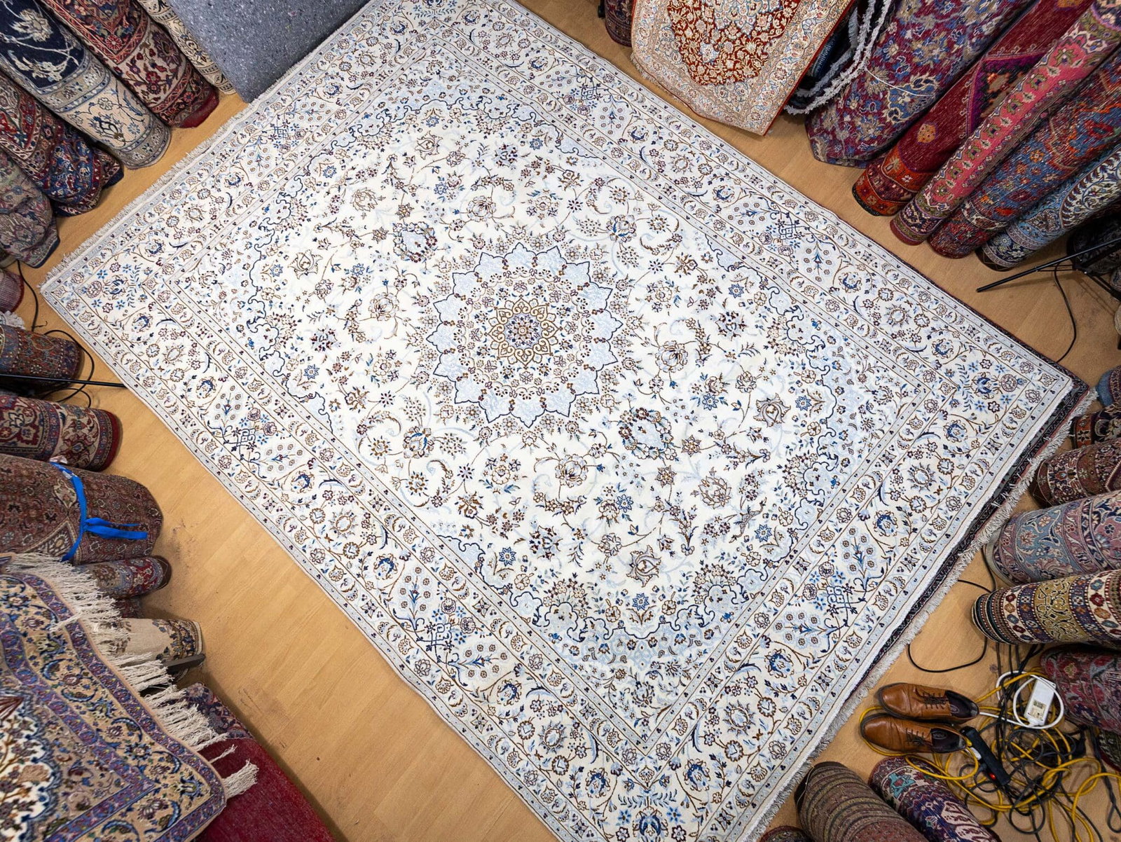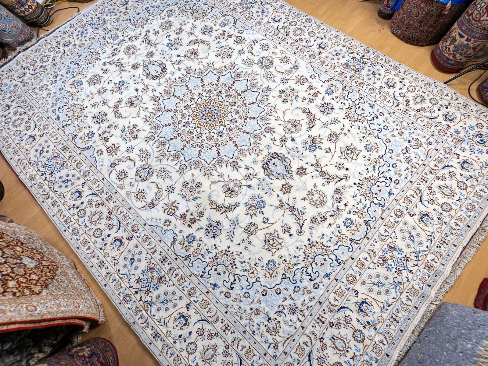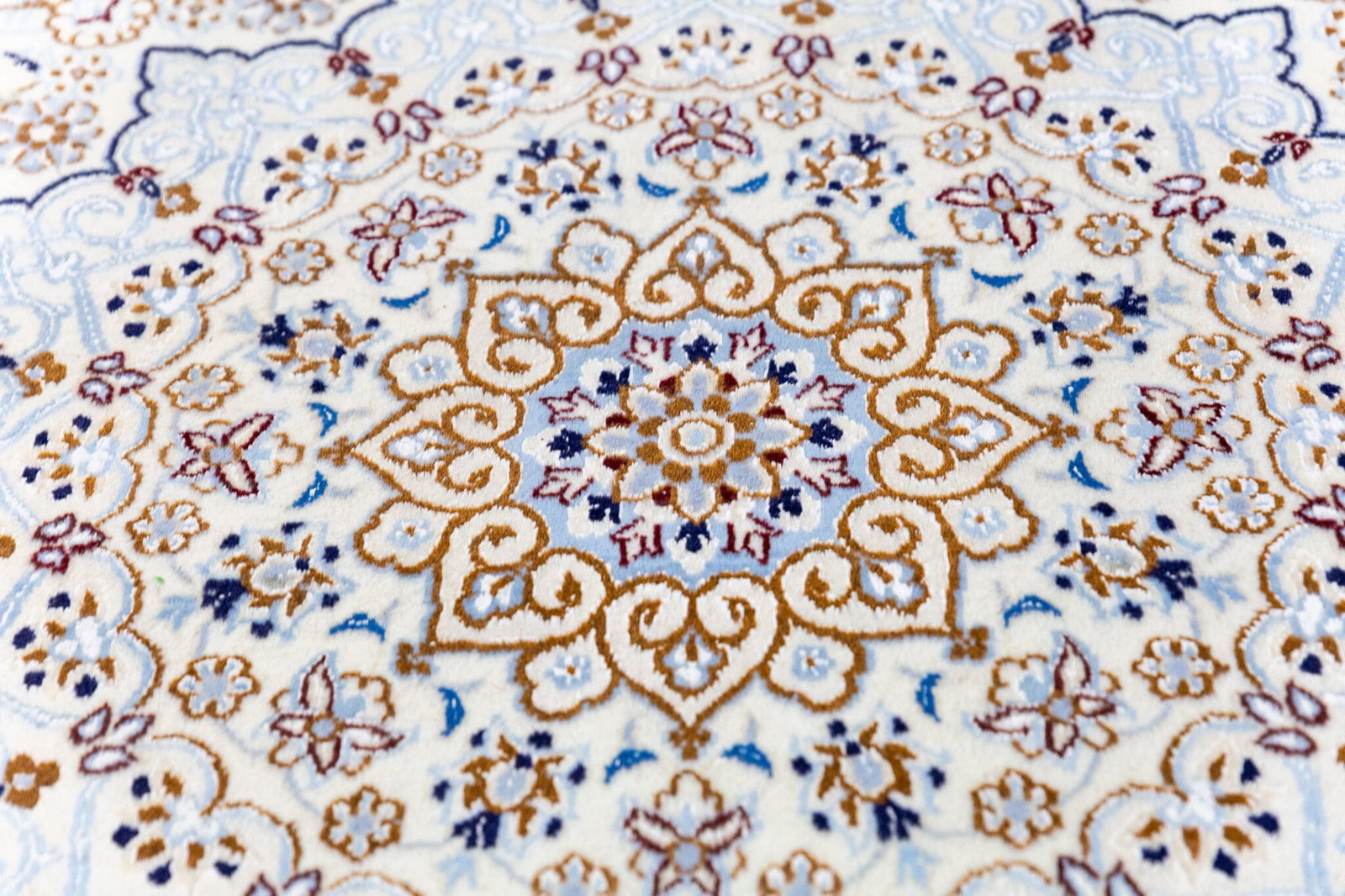Der Teppich stammt aus Nain im Iran, einer der bekanntesten Regionen für hochwertige Perserteppiche. Nain-Teppiche sind weltweit geschätzt für ihre feine Knüpfung, harmonische Farbgebung und klassische Gestaltung.