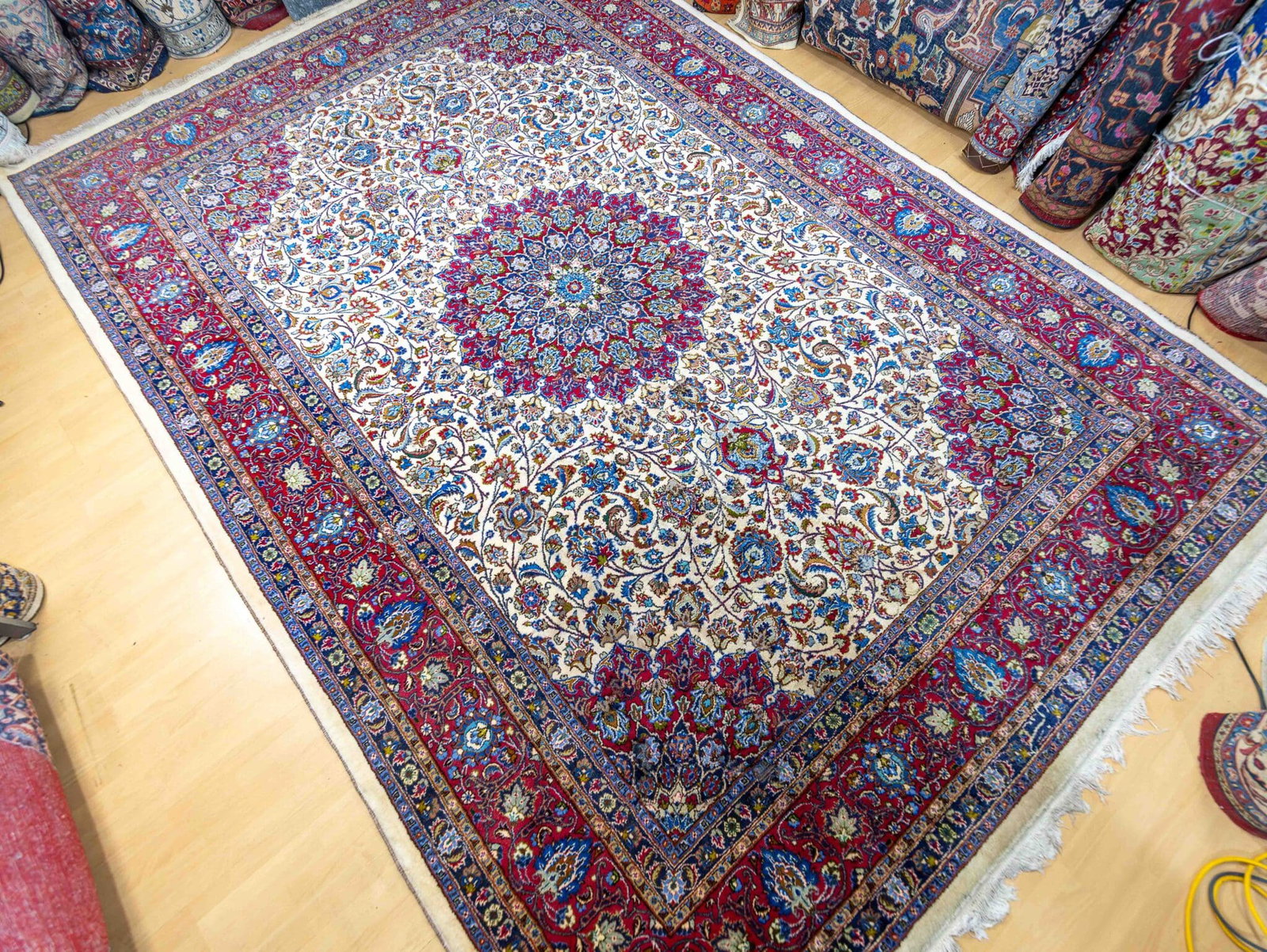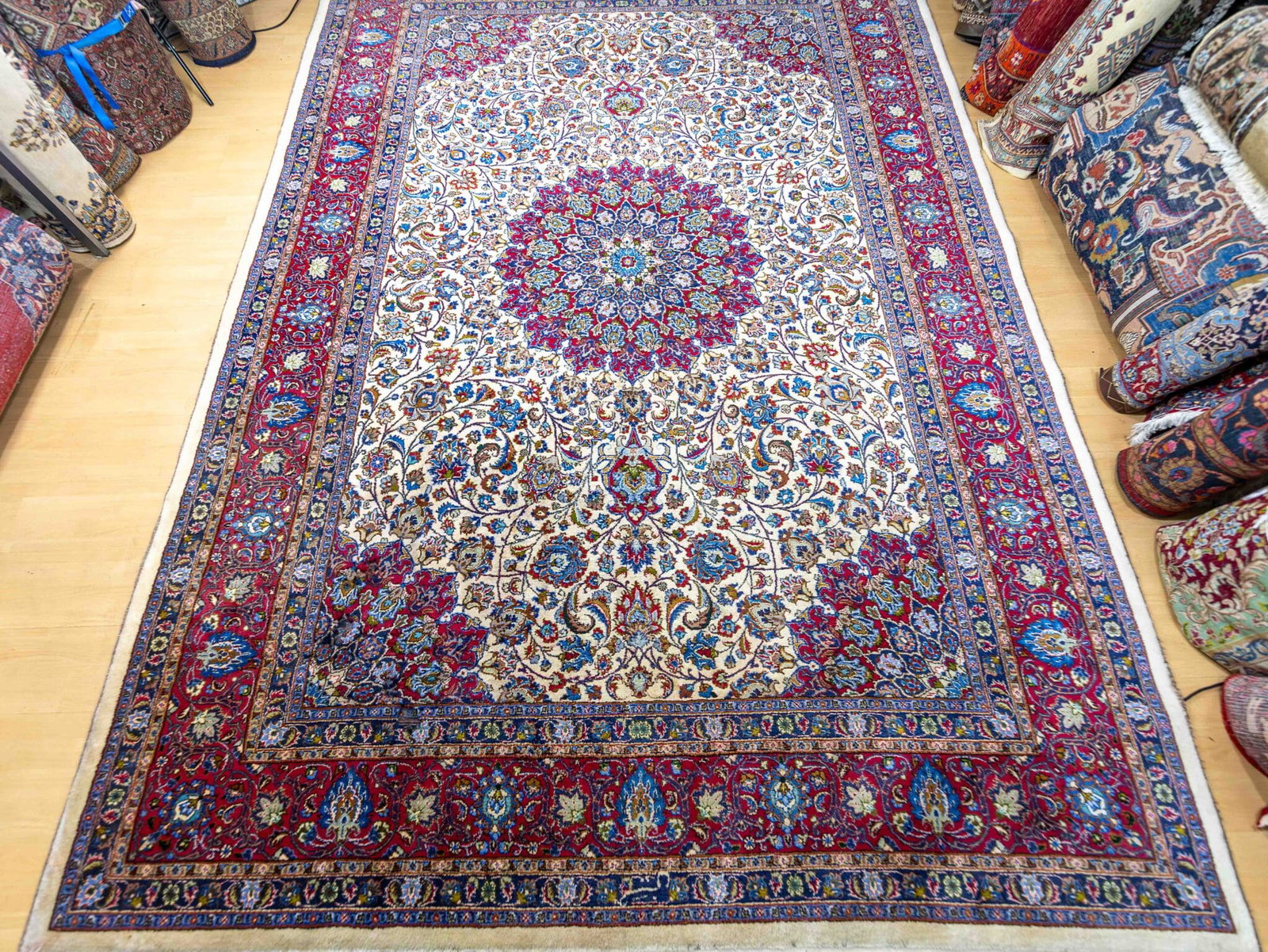 1125$Ursprünglicher Preis war: 1125$913$Aktueller Preis ist: 913$ Weiterlesen(Verkauft) W1 (#167) ca. 305x195cm Neuwertig Handgeknüpfter Nain Perserteppich mit Seide 12la