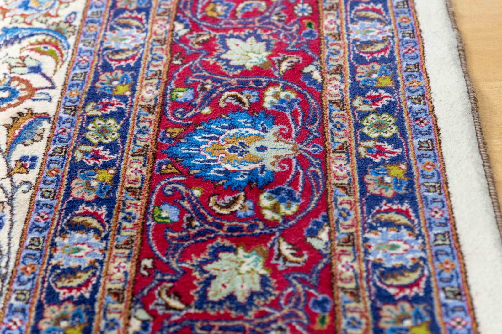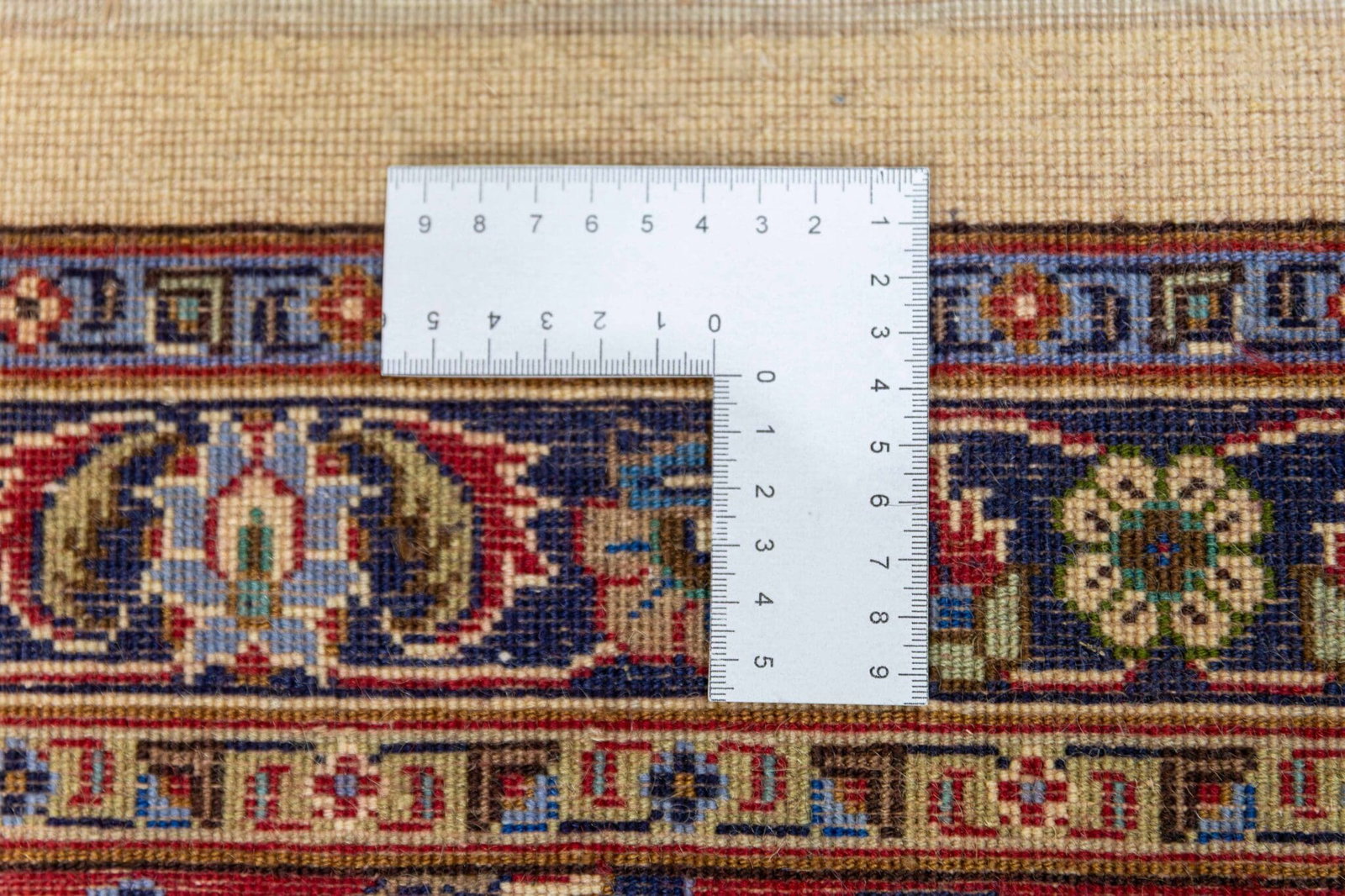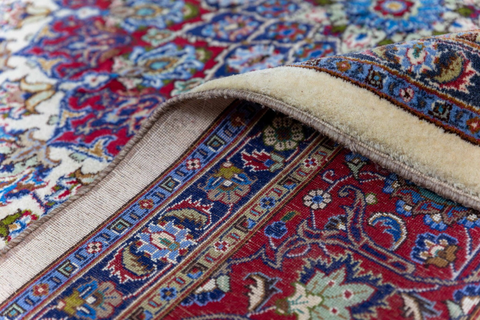 Mit seinen großzügigen Maßen eignet sich dieser Täbriz Teppich hervorragend für große Wohnräume, Esszimmer oder repräsentative Bereiche. Die hohe Knotendichte, das klassische Sheikh Safi Design und die hochwertige Verarbeitung machen diesen Teppich zu einem besonderen Stück persischer Teppichkunst.