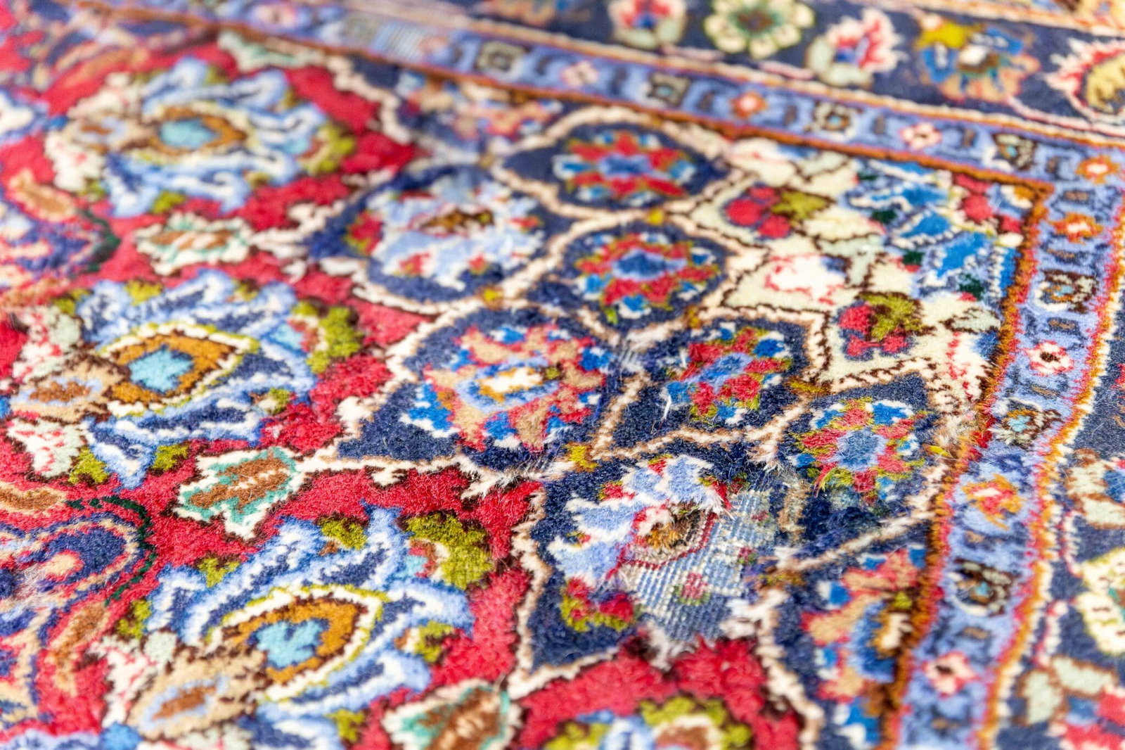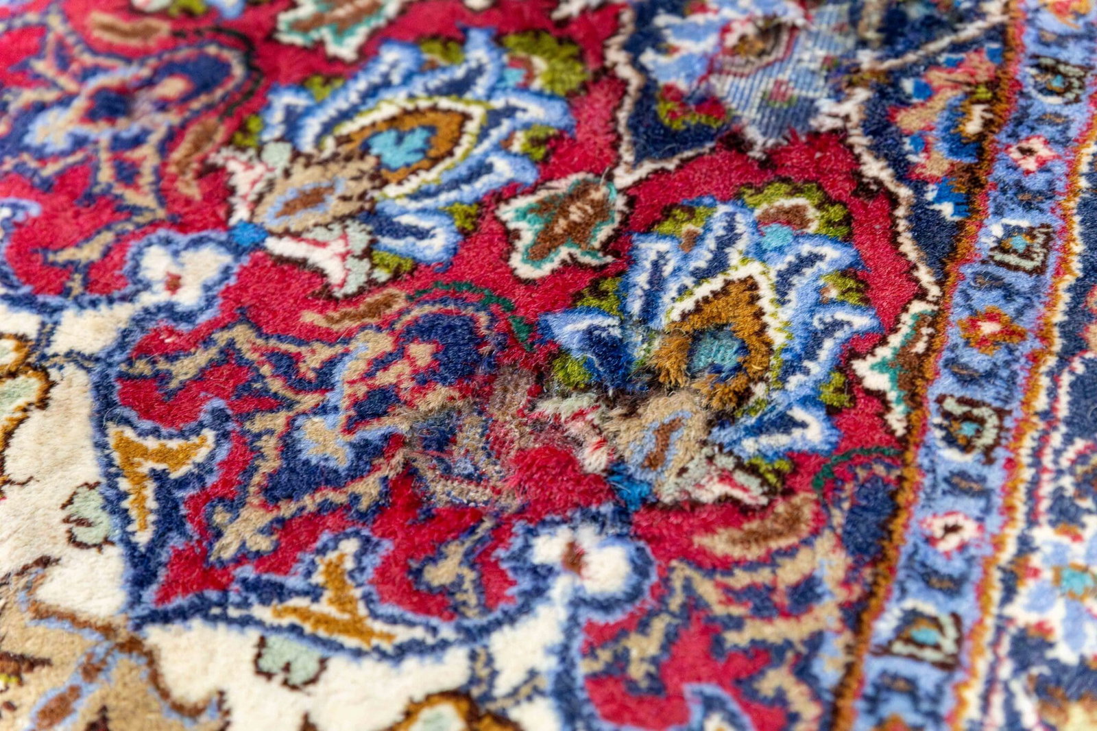 Der ursprüngliche Neupreis eines vergleichbaren Täbriz Teppichs mit dieser Größe und Qualität liegt in der Regel zwischen 3.600 € und 4.000 €. Aufgrund der kleinen Mängel wurde der Preis deutlich reduziert. Eine professionelle Restaurierung ist möglich; die geschätzten Reparaturkosten liegen bei über 1.000 €.