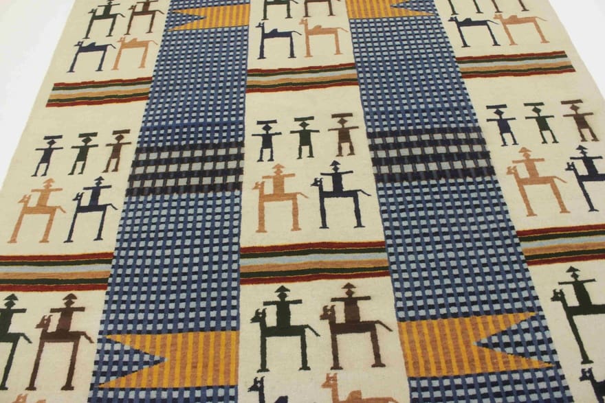 Der abstrakte Reiter-Teppich entstammt einer Region, die für ihre umfassende Teppichtradition bekannt ist und die mit faszinierenden Handwerkskünsten eine lange Geschichte aufweist. Orientteppiche, insbesondere die aus der Region, sind für ihre lebendigen Muster und die Verwendung traditioneller Motive berühmt. Teppiche aus dem Orient reflektieren oft die Kultur und die Geschichten ihrer Ursprungsregion – von den majestätischen Bergen bis zu den endlosen Wüsten. Jeder Teppich erzählt eine Geschichte, die über Generationen hinweg weitergegeben wurde.