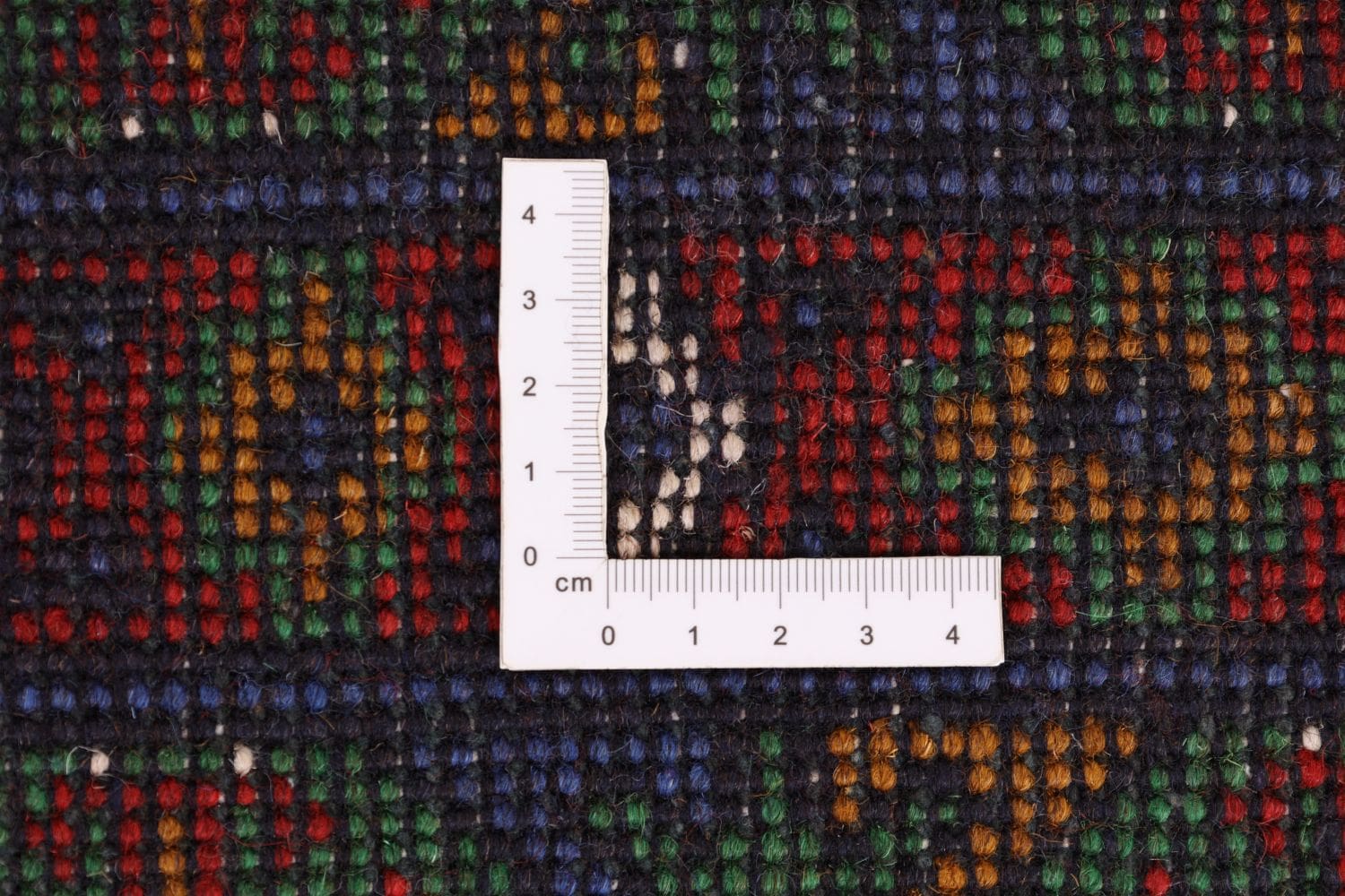 Der geometrische Charakter dieses Teppichs zieht sofort alle Blicke auf sich. Geometrische Muster sind oft tief in der afghanischen Kultur verwurzelt und können eine Vielzahl von Bedeutungen tragen, von Schutz bis hin zu Wohlstand. Die klaren Linien und Formen schaffen eine dynamische Interaktion zwischen Licht und Raum, was dem Teppich eine bemerkenswerte Fähigkeit verleiht, den Raum visuell zu vergrößern und gleichzeitig ein Gefühl der Wärme zu vermitteln. Die Farbpalette ist harmonisch abgestimmt und umfasst typische Erd- und Naturtöne, die perfekt zu einer Vielzahl von Einrichtungstilen passen.