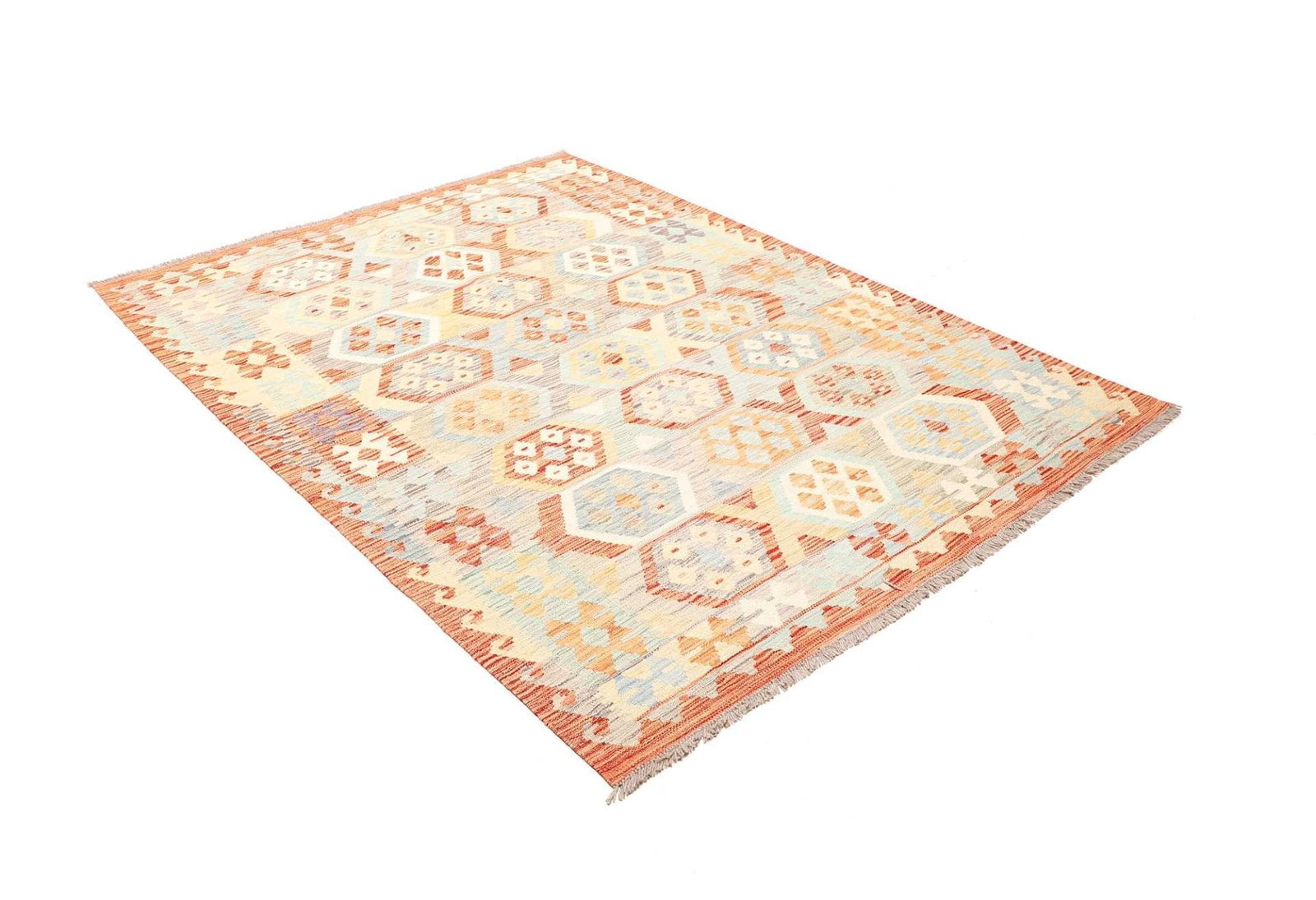 578$ In den WarenkorbKelim 210 x 140 cm – Handgewebt mit beidseitigem Muster – Traditioneller Teppich aus Fars – Handgeknüpft – Orientteppich