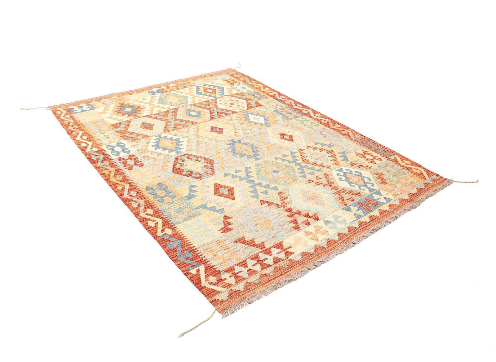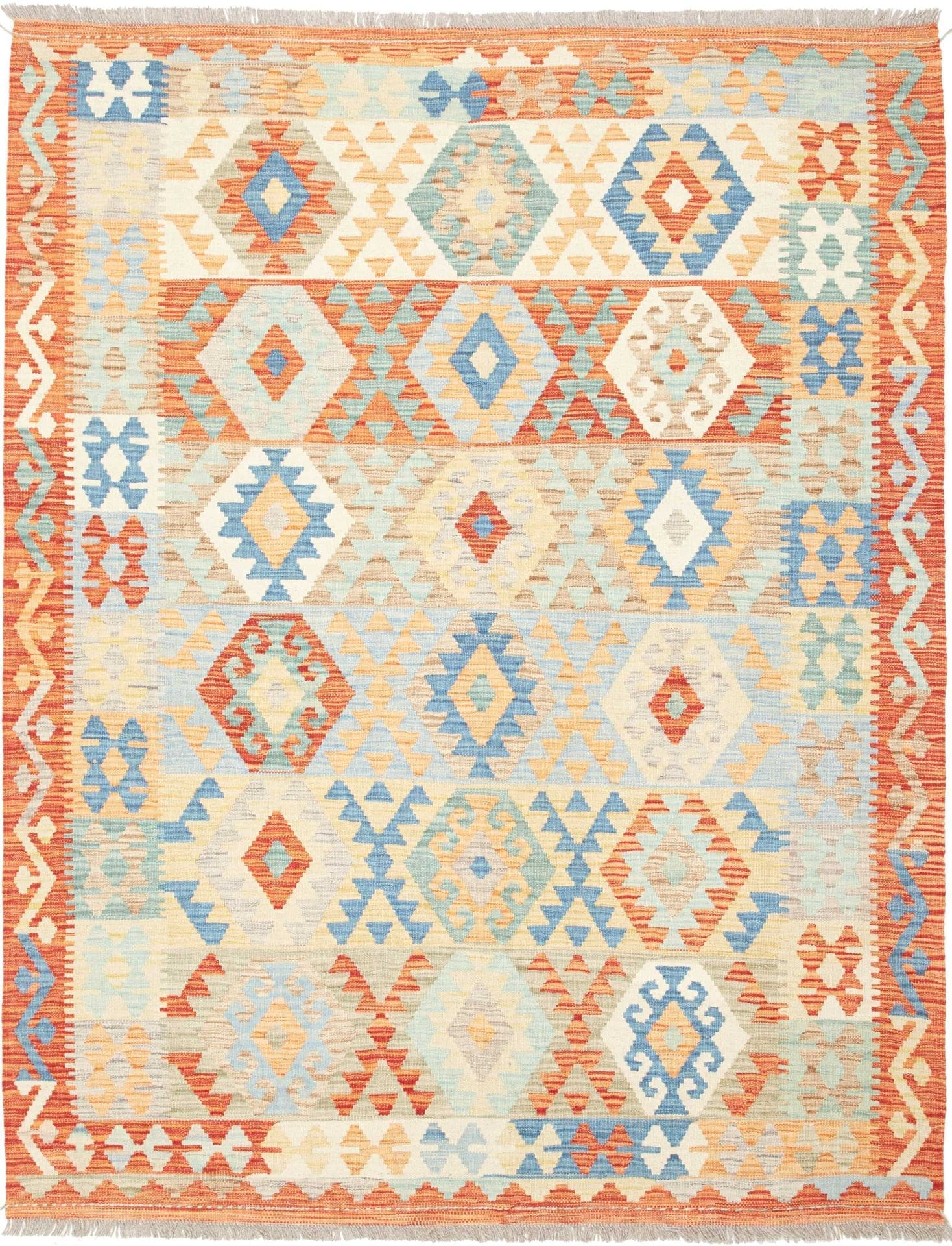 Afghanischer Kelim 159 x 202cm, geometrisches Muster, handgewebt