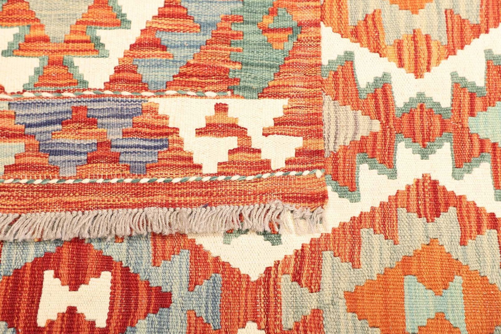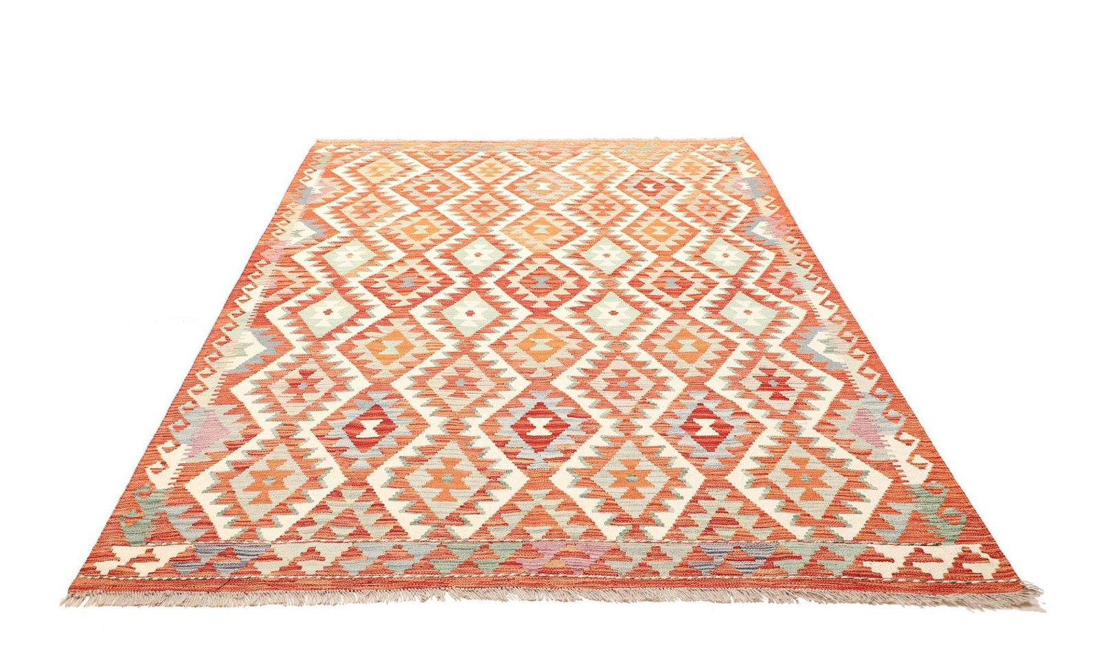 Bedenken Sie, dass jeder Kelim ein Unikat ist. Kleinere Abweichungen in den Mustern und Farben sind daher normal und unterstreichen die handwerkliche Qualität und den persönlichen Charme des Teppichs.