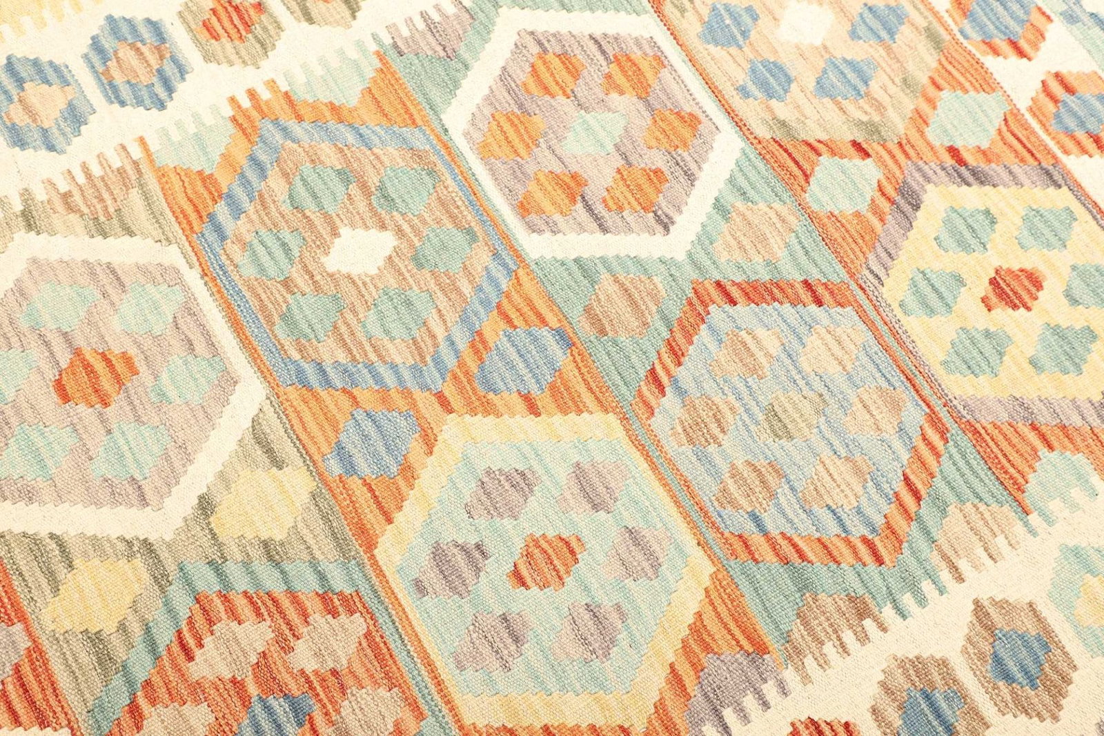 Kelim Teppich | Knotendichte: ca. 200.000 Knoten/m² | Material: 100% Schurwolle (Flor), 100% Baumwolle (Kette) | Größe: 178 x 257 cm | Zustand: Handgewebte Qualität | Herkunft: Afghanistan | Florhöhe: ca. 5 mm | Vielseitig einsetzbar als Teppich, Vorhang oder Wandschmuck