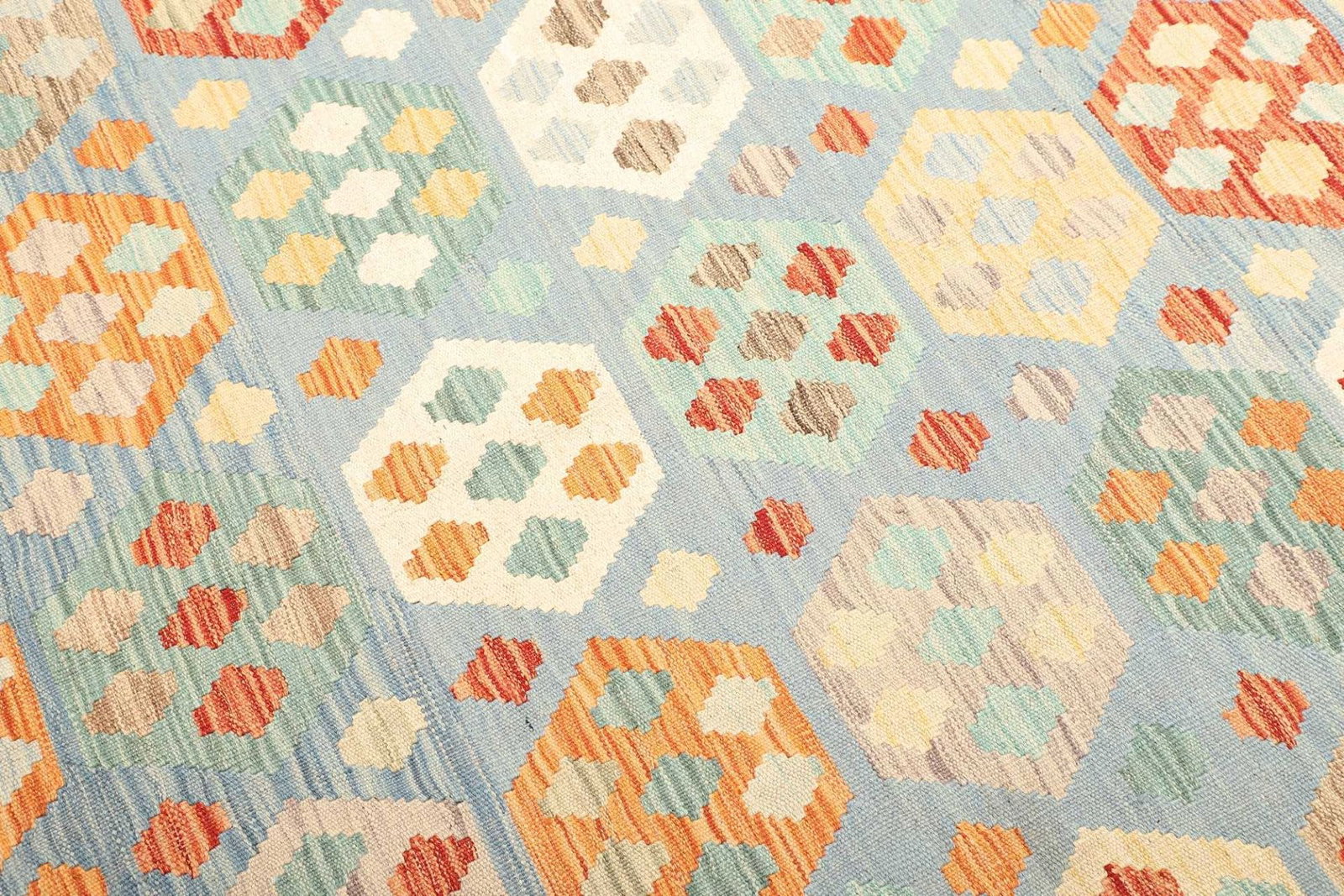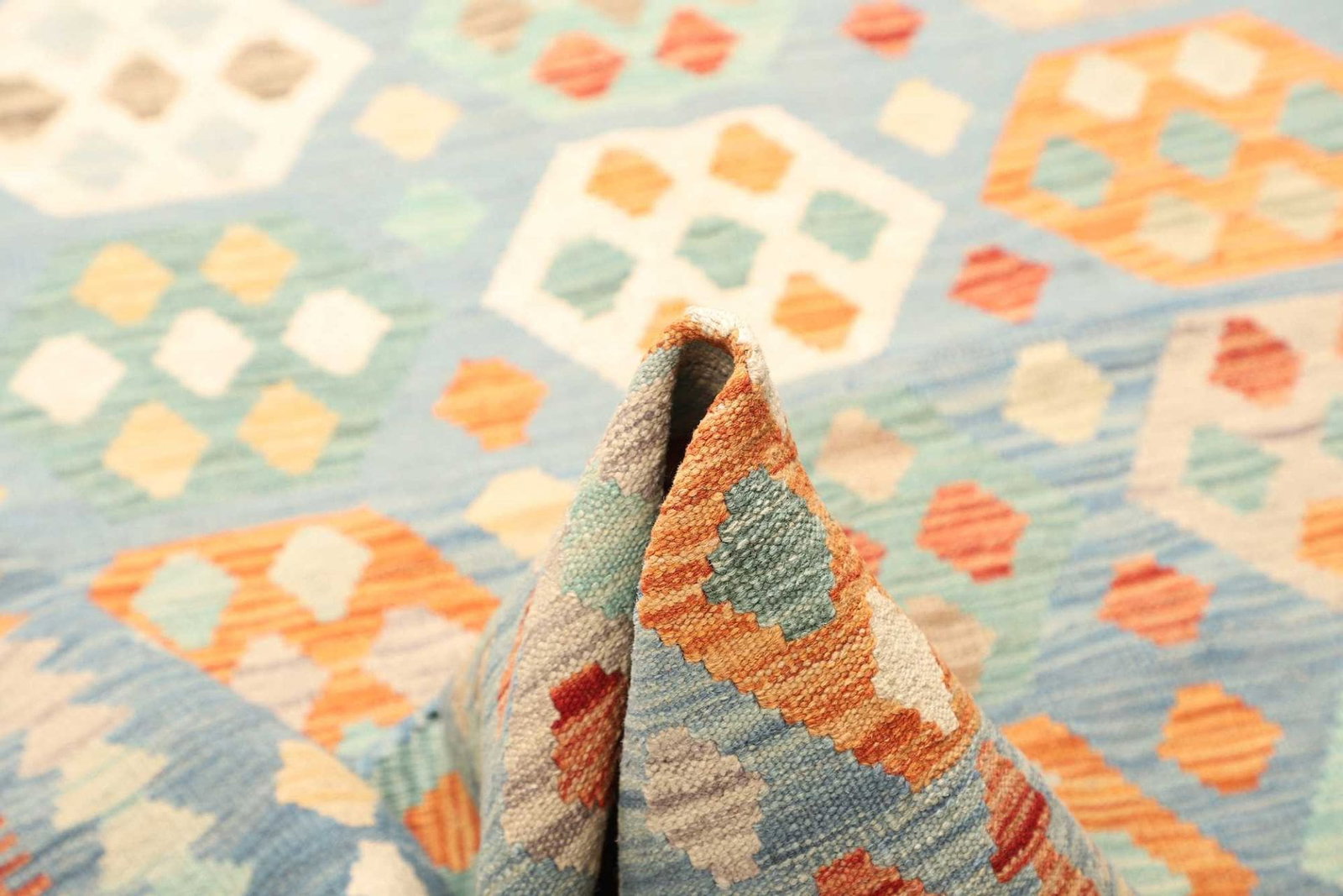 Der afghanische Kelim besticht durch sein rustikales und zeitloses Design. Typisch für einen Kelim sind die geometrischen Muster, die in kräftigen, farblich harmonierenden Tönen gestaltet sind. Diese Designs können sowohl traditionell als auch modern interpretiert werden und fügen sich sowohl in klassische als auch in zeitgenössische Innenräume hervor. Die Verwendung von kontrastierenden Farben schafft nicht nur visuelle Tiefe, sondern zieht auch die Blicke auf sich und macht den Teppich zum zentralen Punkt im Raum.