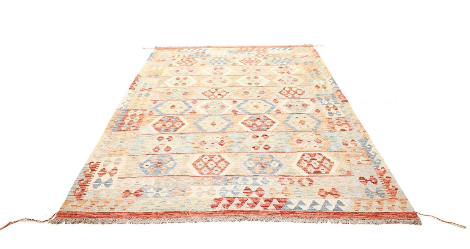 663$Ursprünglicher Preis war: 663$554$Aktueller Preis ist: 554$Kelim Teppich | Knotendichte: ca. 200.000 Knoten/m² | Material: 100% Schurwolle | Größe: 183 x 256 cm | Herkunft: Afghanistan | Zustand: Handgewebt | Florhöhe: ca. 5 mm