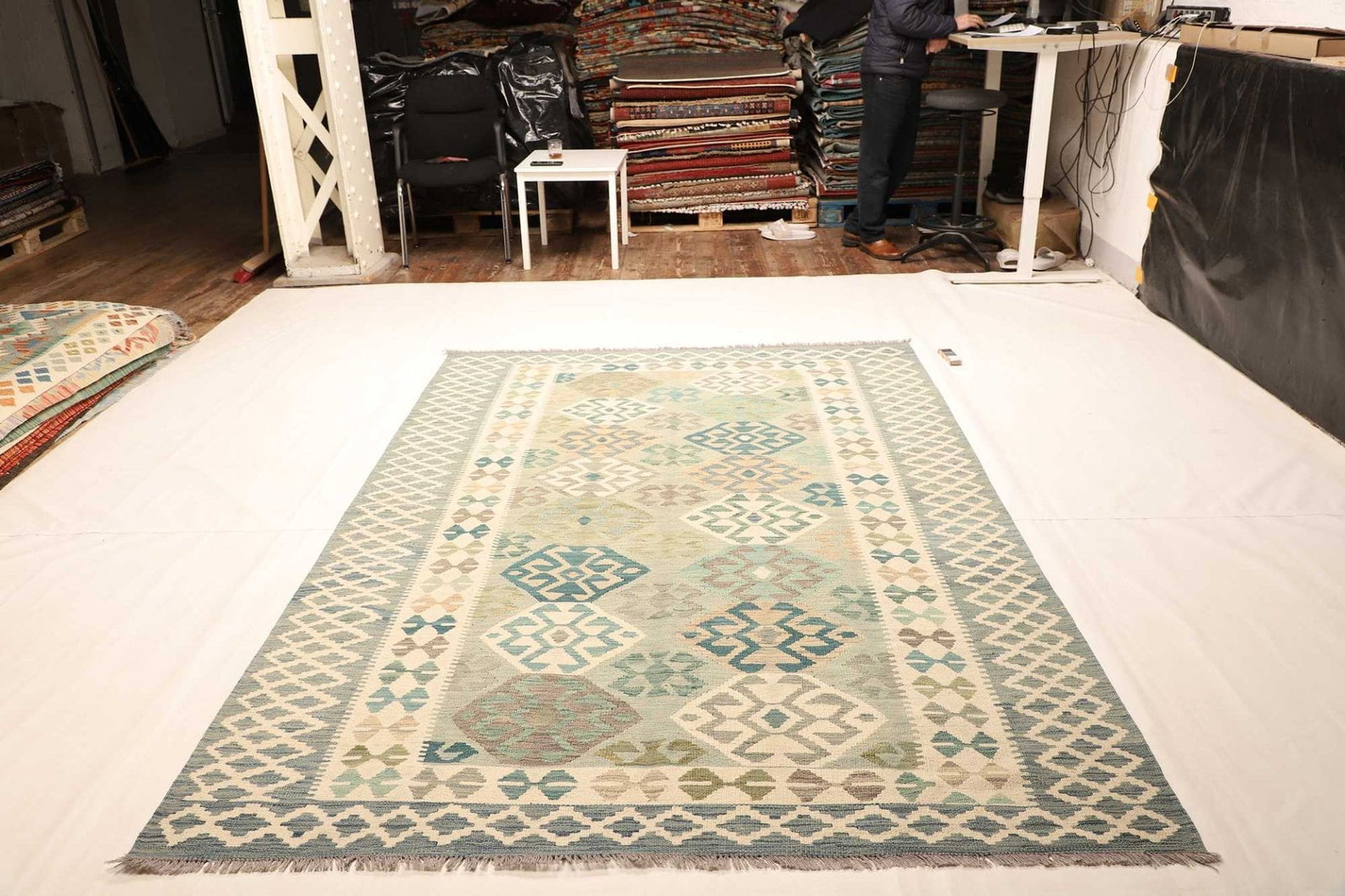 Afghanischer Kelim 183 x 262cm, geometrisches Muster, handgewebt