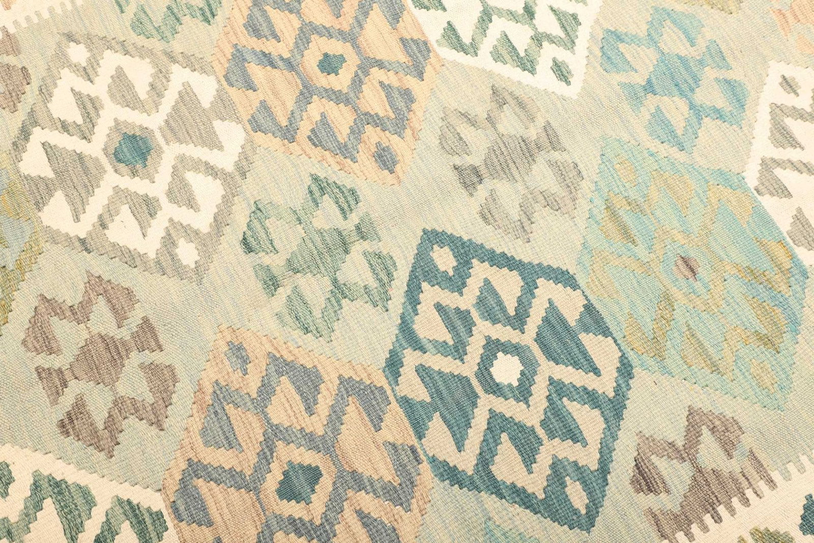 Der Afghanische Kelim bringt die Essenz traditioneller Teppichkunst in Ihr Zuhause und schafft eine einladende und warme Atmosphäre, die sowohl verspielte als auch elegante Lebensstile anspricht.