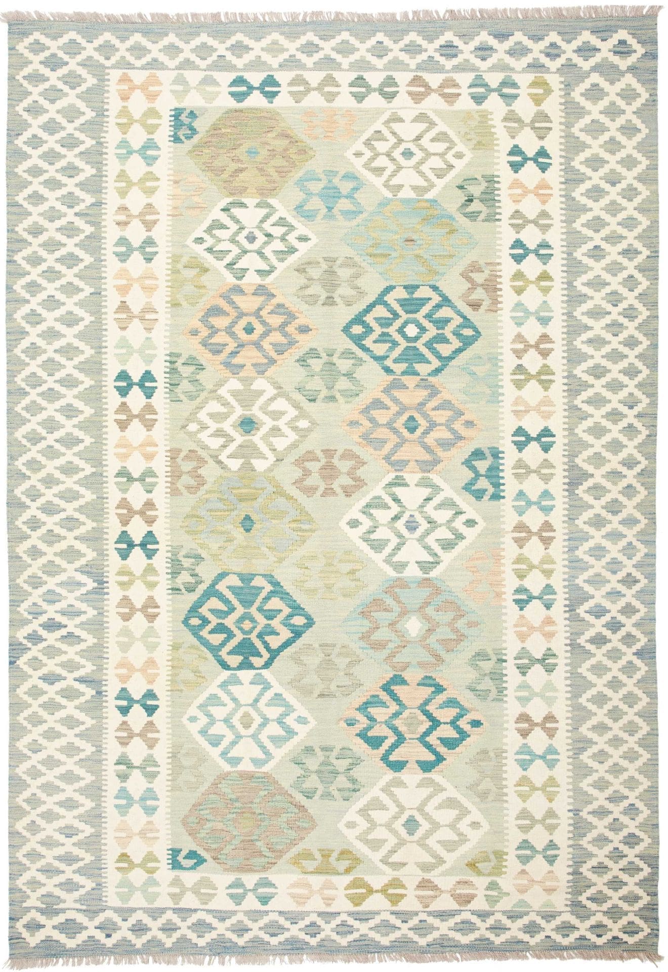 Kelim Teppich | Knotendichte: ca. 200.000 Knoten/m² | Material: 100% Schurwolle | Größe: 183 x 262 cm | Herkunft: Afghanistan | Verarbeitung: Handgewebt | Höhe: ca. 5 mm | Beidseitig verwendbar