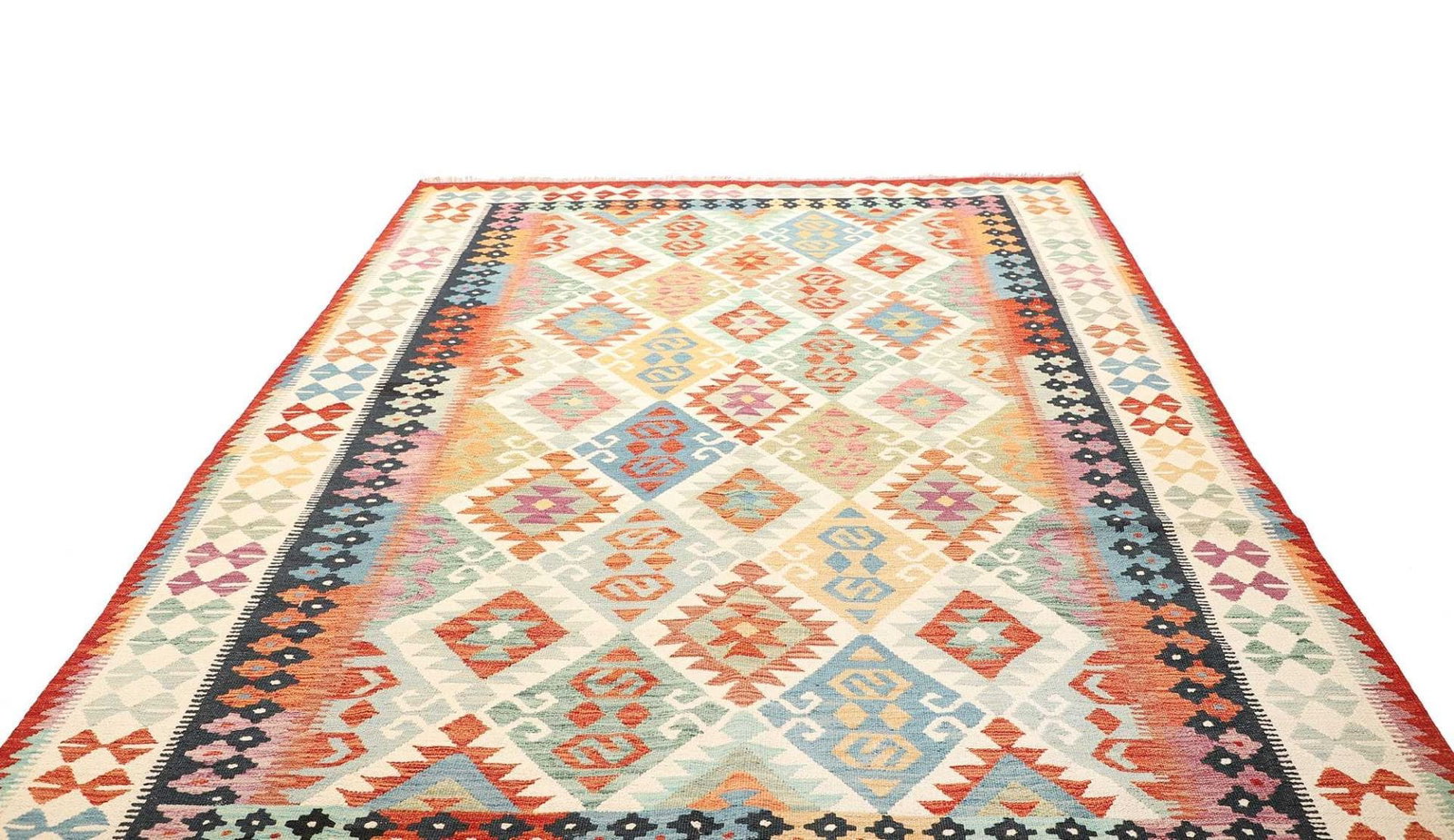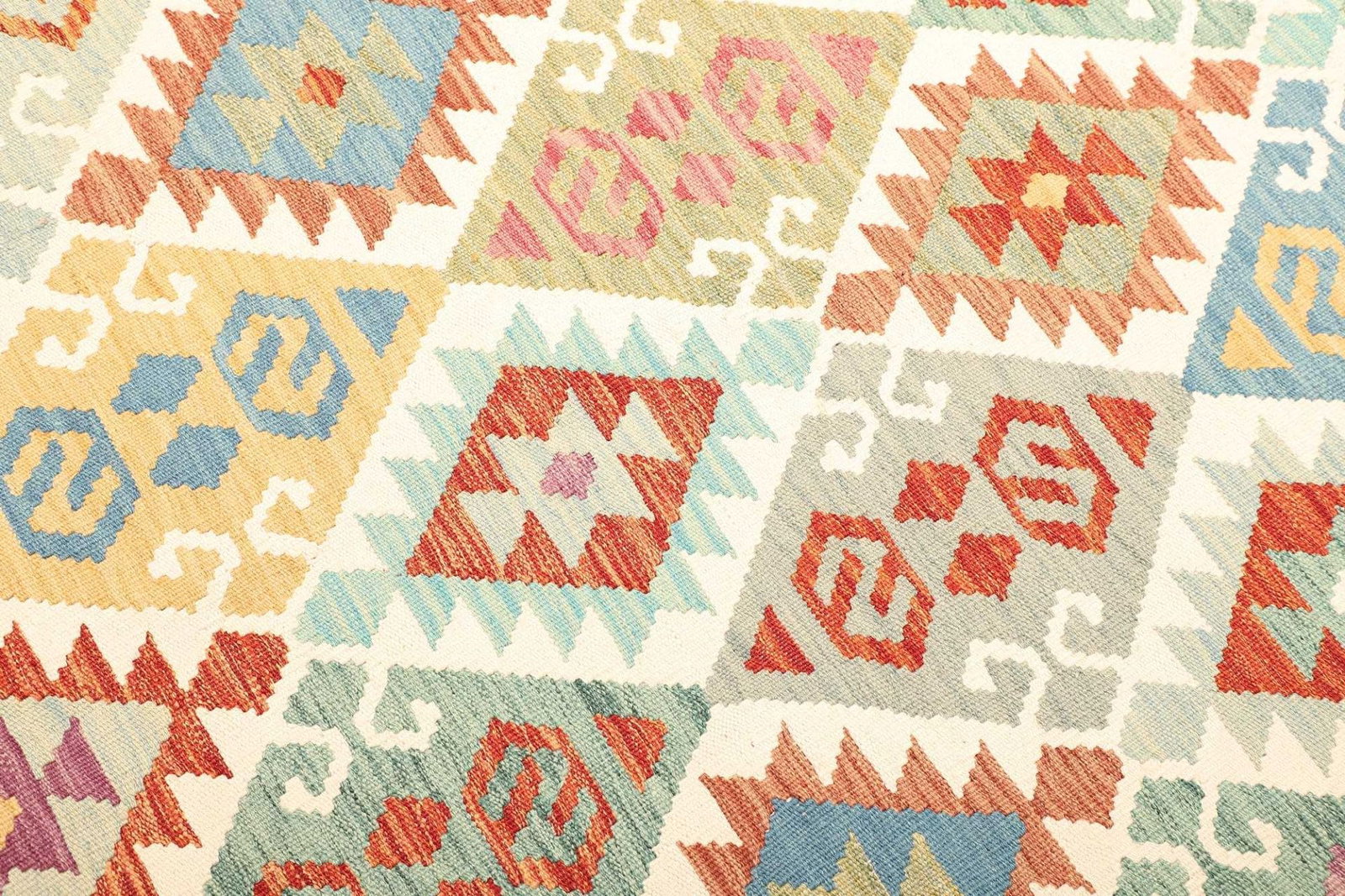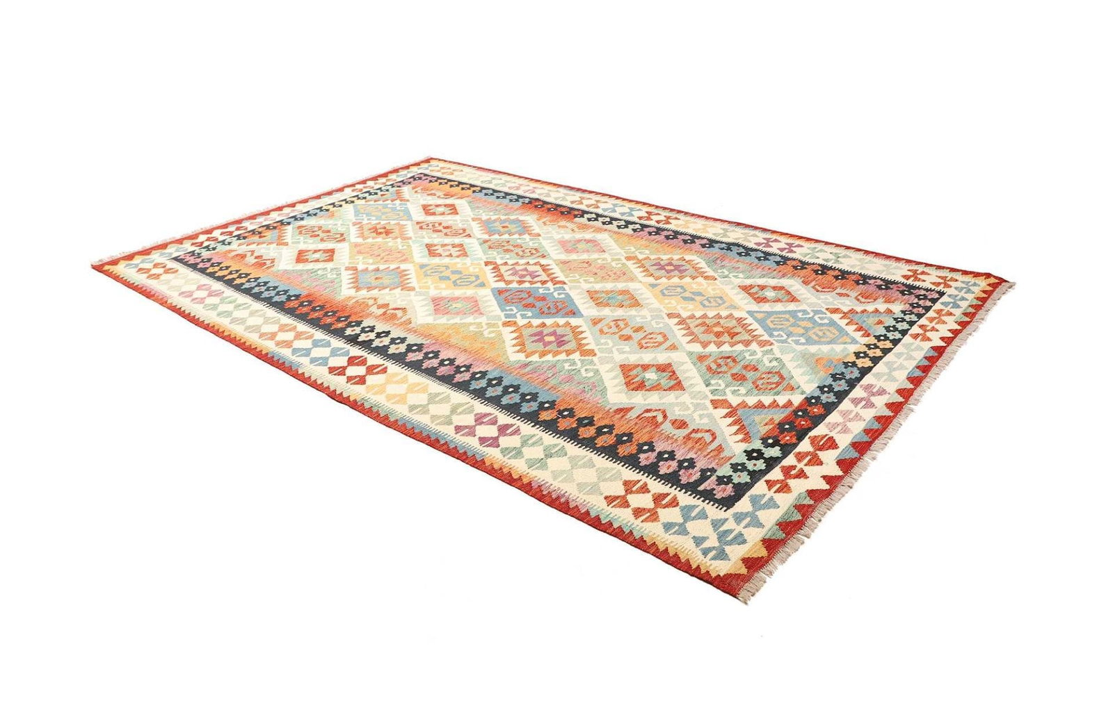 Kelim Teppich | Knotendichte: ca. 200.000 Knoten/m² | Material: 100% Schurwolle | Größe: 205 x 306 cm | Zustand: Handgewebt | Herkunft: Afghanistan | Höhe: ca. 5 mm | Kette: 100% Baumwolle