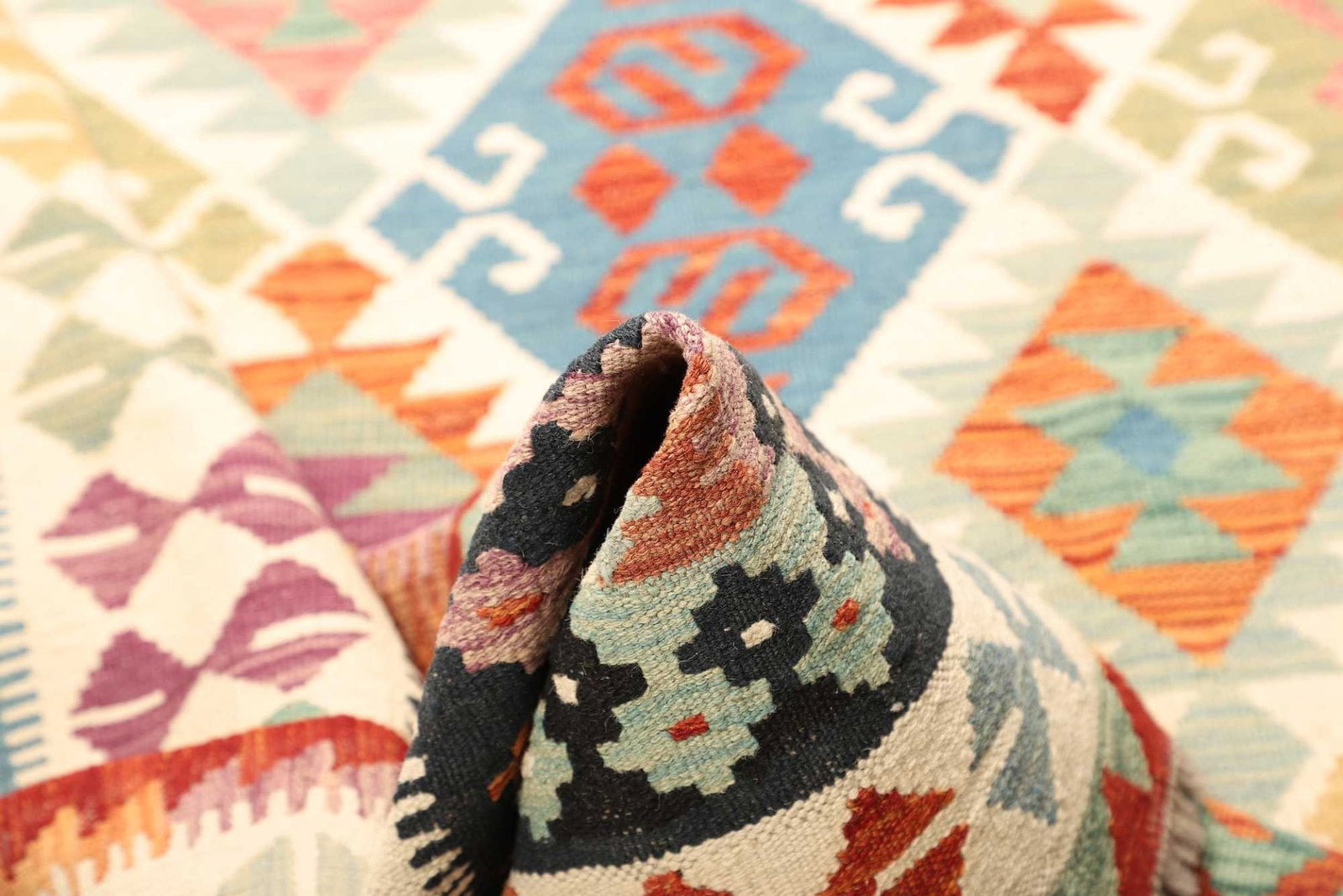 Das Besondere an diesem afghanischen Kelim ist nicht nur die Verwendung hochwertiger Schurwolle und die handgewebte Technik, sondern auch die Möglichkeit, ihn in verschiedenen Wohnkulturen zu integrieren. Er eignet sich gleichermaßen für moderne, minimalistische Räume als auch für traditionelle Einrichtungen. Zudem ist er pflegeleicht und durch die natürliche Wolle sehr widerstandsfähig gegen Schmutz und Abnutzung.