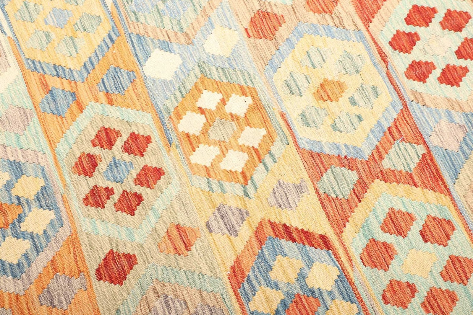 Kelim Teppich | Knotendichte: ca. 200.000 Knoten/m² | Material: 100% Schurwolle & 100% Baumwolle | Größe: 206×303 cm | Herkunft: Afghanistan | Zustand: Handgewebte Qualität | Höhe: ca. 5 mm