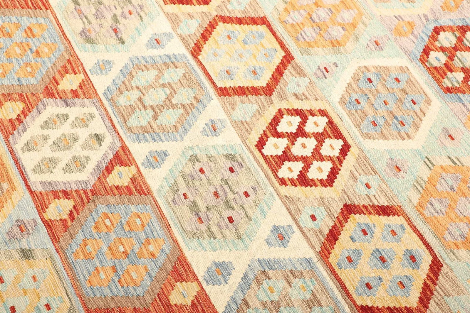 Der afghanische Kelim ist äußerst vielseitig und kann in verschiedenen Räumen eingesetzt werden. Ob im Wohnbereich, Schlafzimmer oder im Flur – sein auffälliges Design und die lebhaften Farben machen ihn zu einem perfekten Hingucker. Er passt sowohl in moderne als auch in traditionelle Inneneinrichtungen.