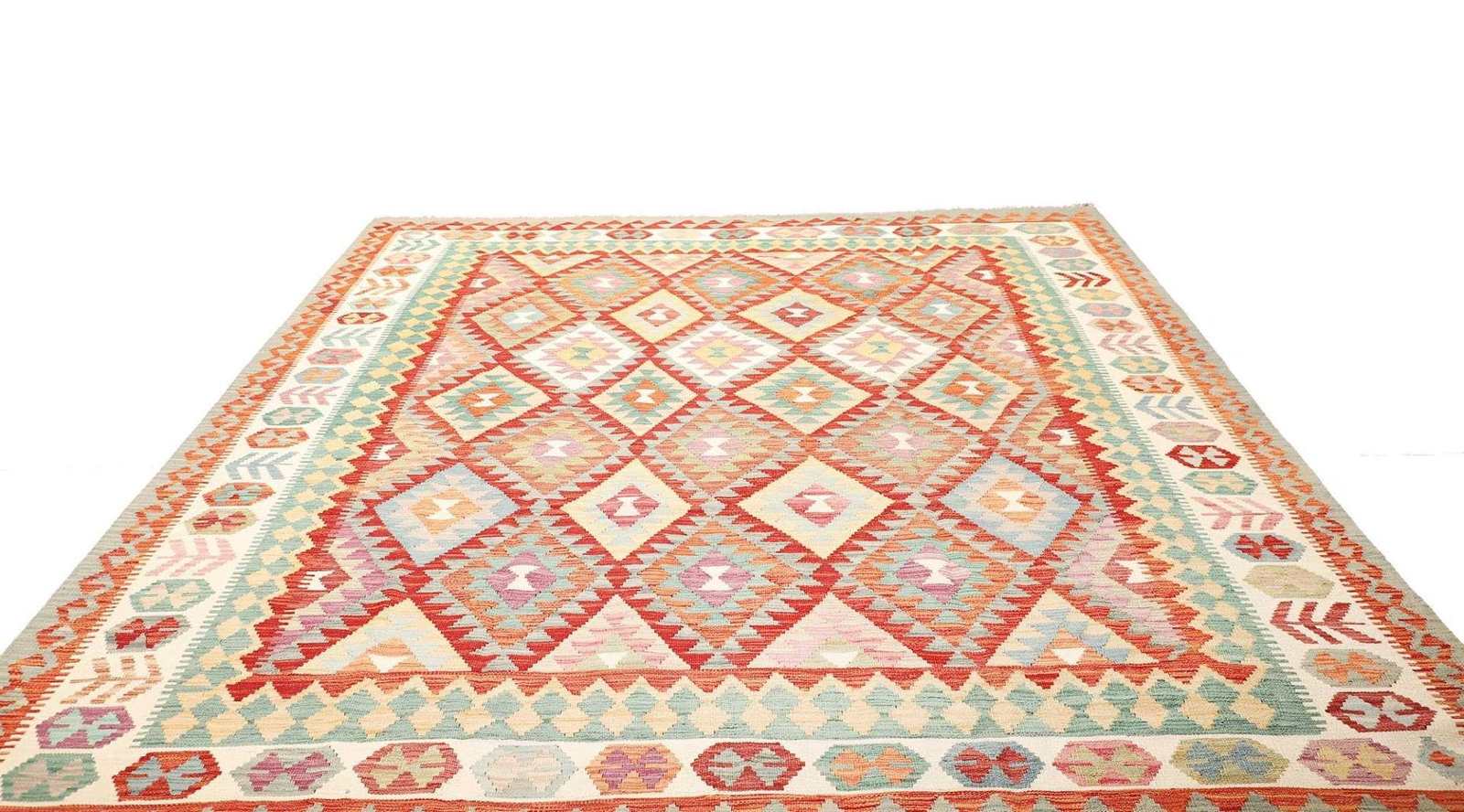 Der afghanische Kelim ist ein wahres Meisterwerk der Handwerkskunst und bringt die farbenfrohe Kultur Afghanistans in Ihr Zuhause. Jeder Teppich erzählt seine eigene Geschichte und bietet eine einzigartige Charakteristik, die ihn von anderen Teppichen unterscheidet. Durch die Verwendung von hochwertigen Materialien, einer detailreichen Verarbeitung und einem auffallenden geometrischen Muster hebt sich dieser Kelim nicht nur durch seine Ästhetik ab, sondern auch durch seine Langlebigkeit und Funktionalität.