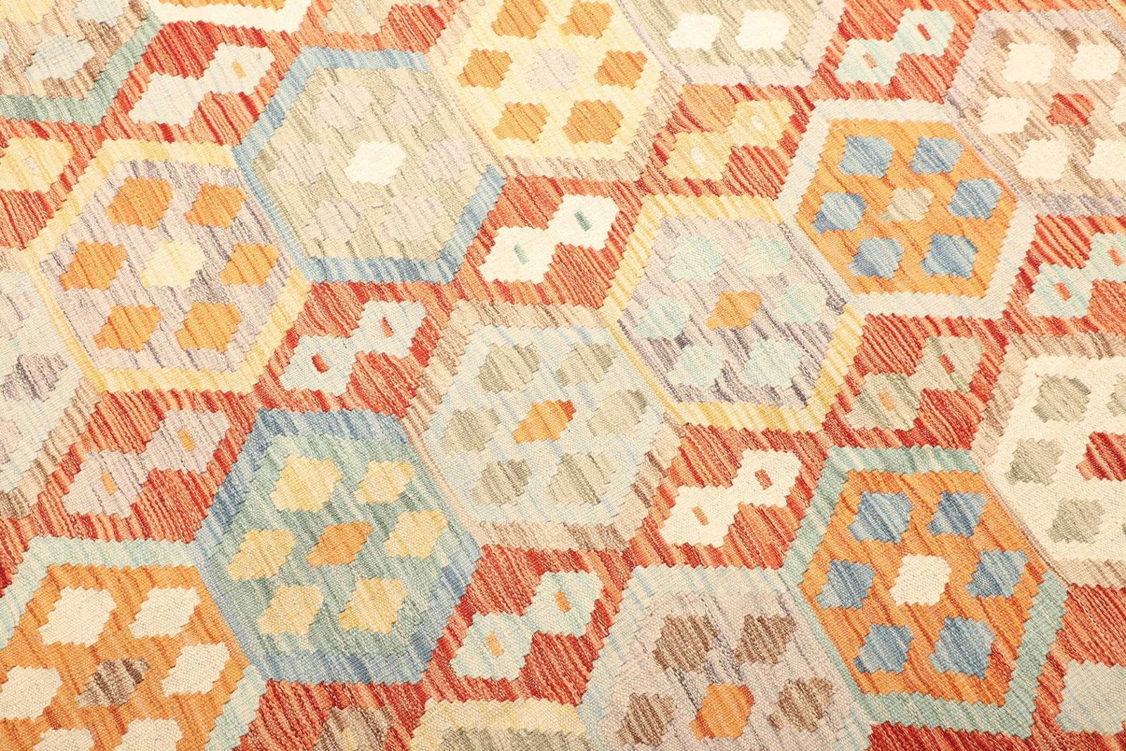 Dieser Afghanische Kelim eignet sich hervorragend für Wohnräume, Esszimmer, Flure oder sogar Schlafzimmer. Dank seiner robusten Konstruktion und der zeitlosen Designs lässt er sich wunderbar in unterschiedlichen Einrichtungsstilen integrieren.