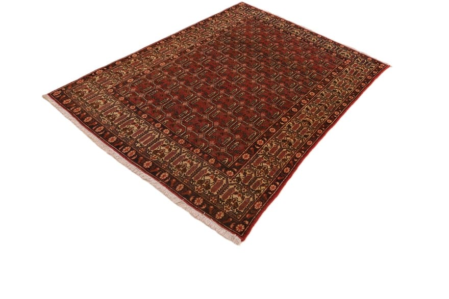 Antiker Abadeh-Teppich | Größe: 195×142 cm | Knotendichte: 128.000 – 160.000 Knoten/m² | Material: Wolle/Seide | Ursprung: Iran/Persien | Zustand: Antik | Farbe: Rot/Orange | Form: Rechteckig | Dicke: ca. 8 mm | Gewicht: ca. 10 kg