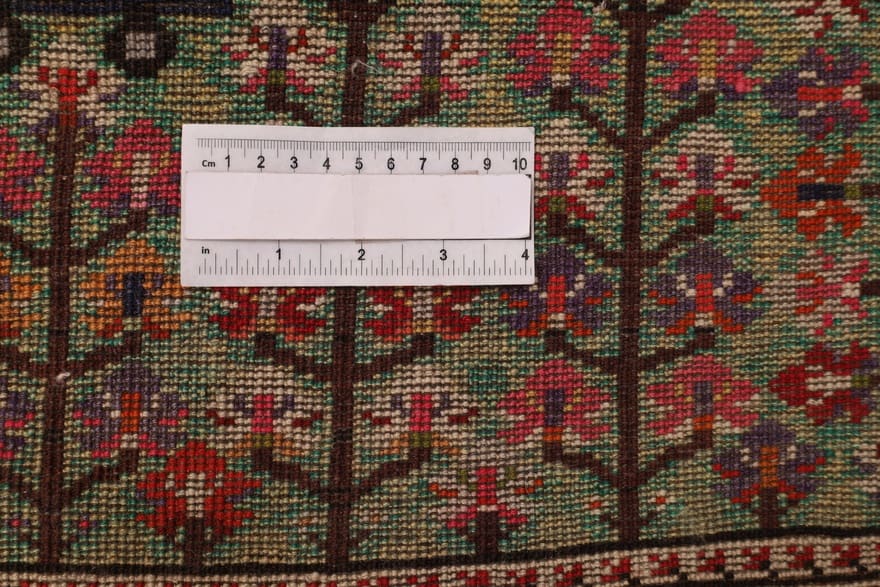 Der Teppich besteht aus feinstem, handgesponnenem Wolle, das für seine Strapazierfähigkeit und Langlebigkeit bekannt ist. Die Verarbeitung erfolgt in mühevoller Handarbeit, wobei die Knotendichte eine entscheidende Rolle spielt. Jeder Knoten wird mit Sorgfalt und Präzision von erfahrenen Webern geknüpft, was diesem Teppich seine einzigartige Struktur und seinen Charakter verleiht. Die hohe Knotendichte sorgt nicht nur für eine besondere Robustheit, sondern auch für die detaillierte Ausarbeitung der Muster, die in jedem noch so kleinen Bereich des Teppichs zur Geltung kommen.