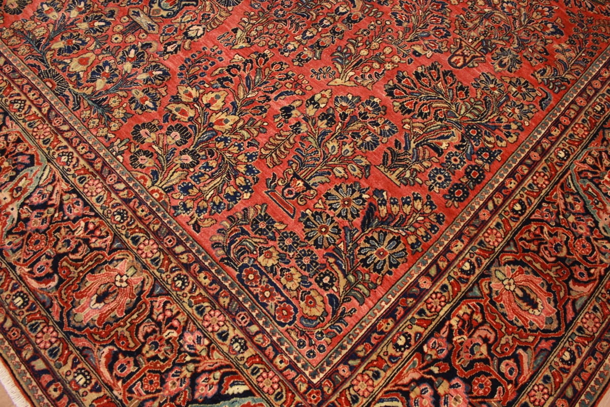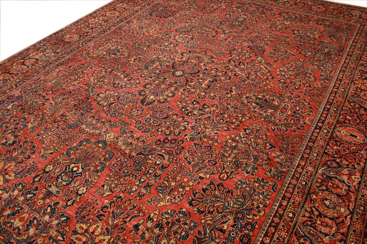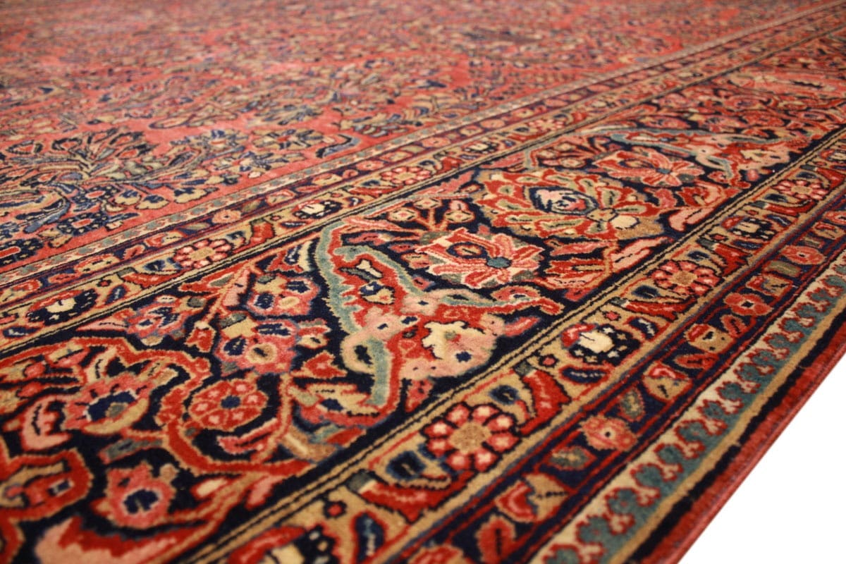 Antiker amerikaischer Sarough | Knotendichte: Hoch | Muster: Farbenfrohe Blatt- und Blumenmotive | Größe: 405×307 cm | Material: Hochwertige Wolle | Zustand: Sehr gut erhalten | Ursprung: Orient