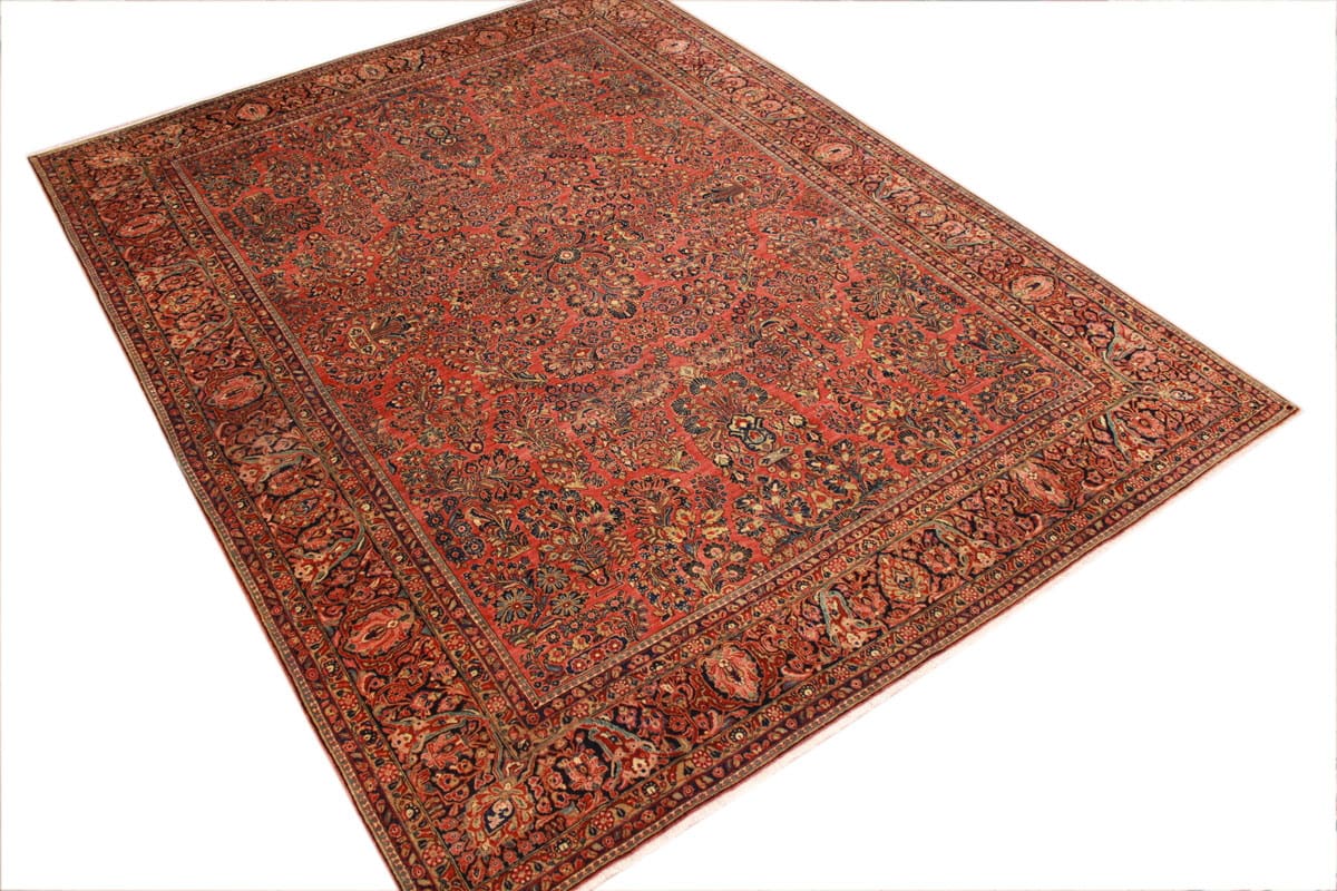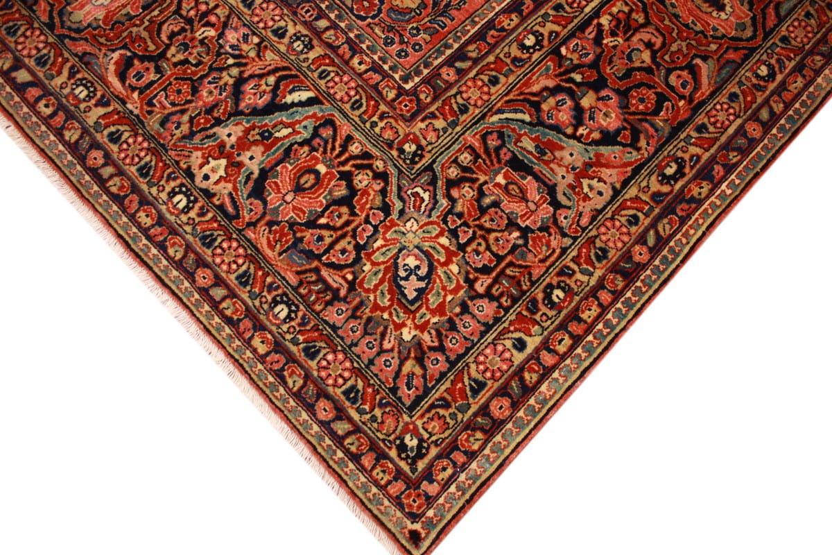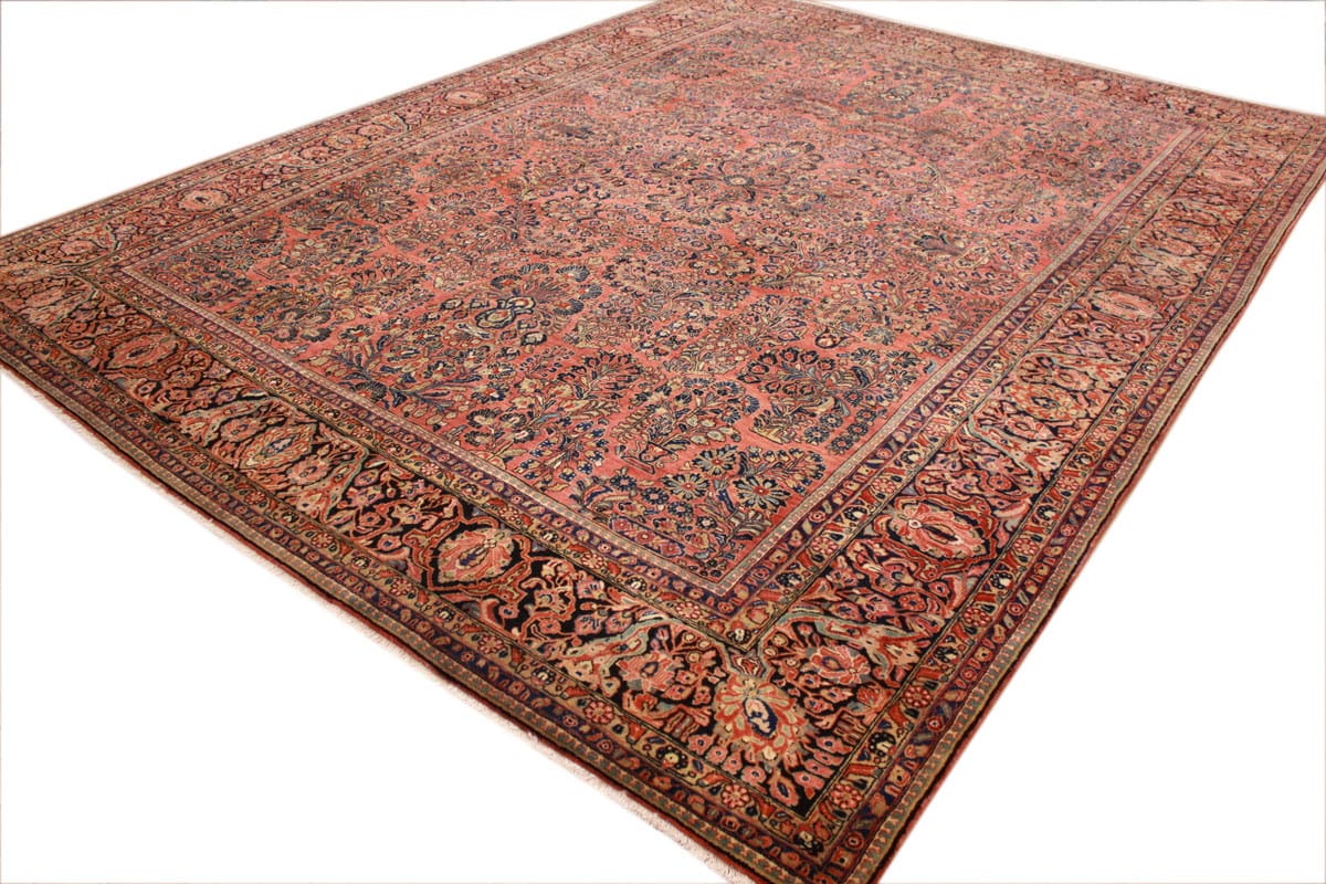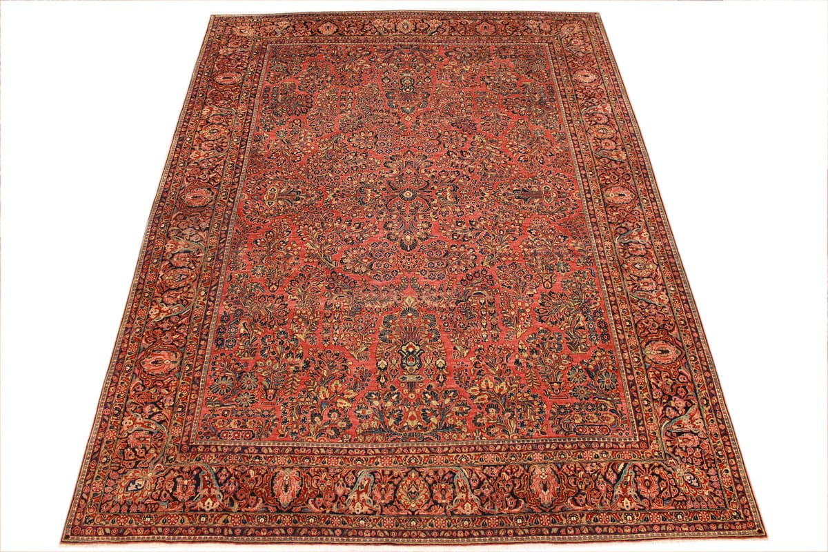 Antiker amerikaischer Sarough | Knotendichte: Hoch | Muster: Farbenfrohe Blatt- und Blumenmotive | Größe: 405×307 cm | Material: Hochwertige Wolle | Zustand: Sehr gut erhalten | Ursprung: Orient