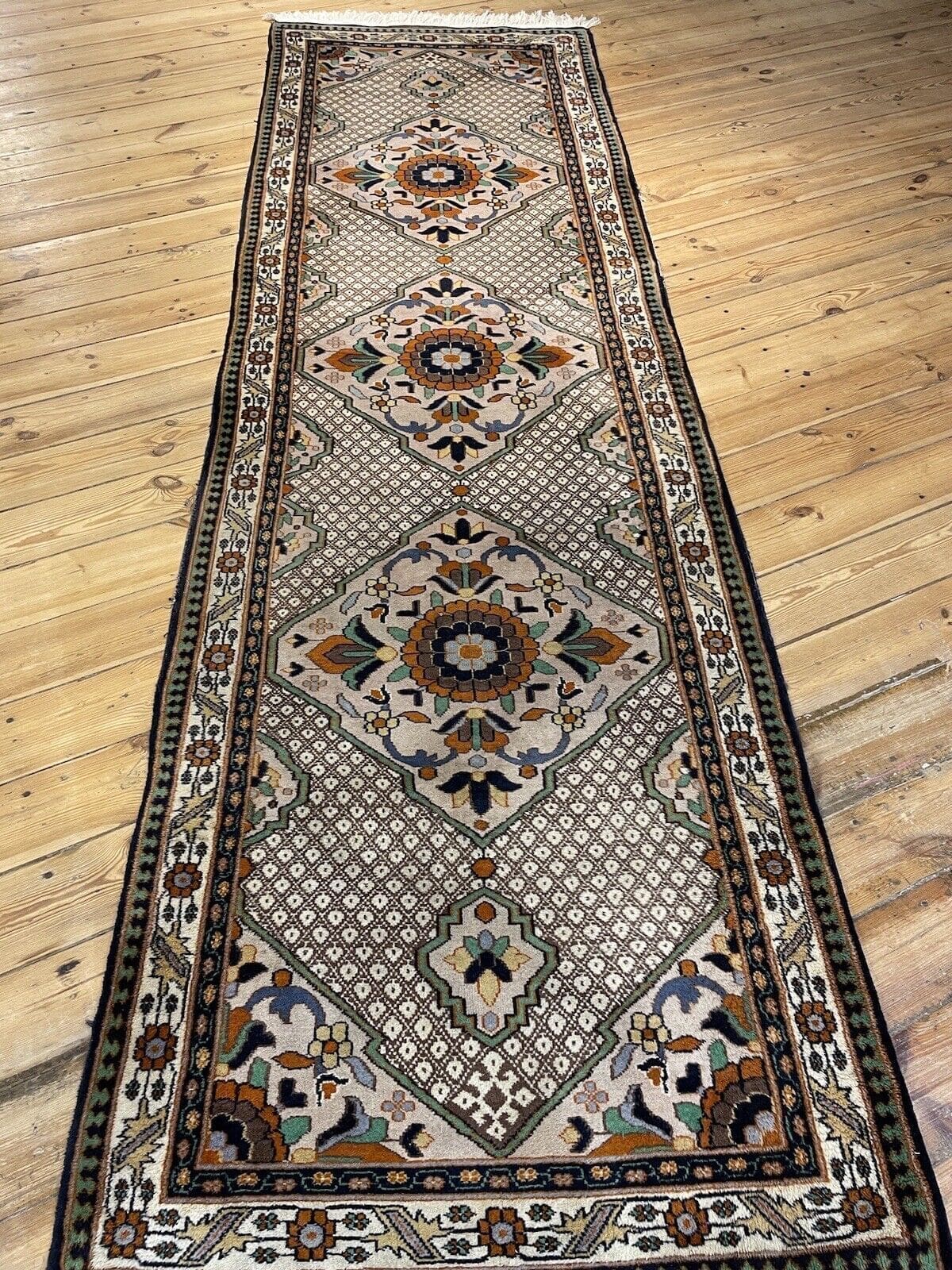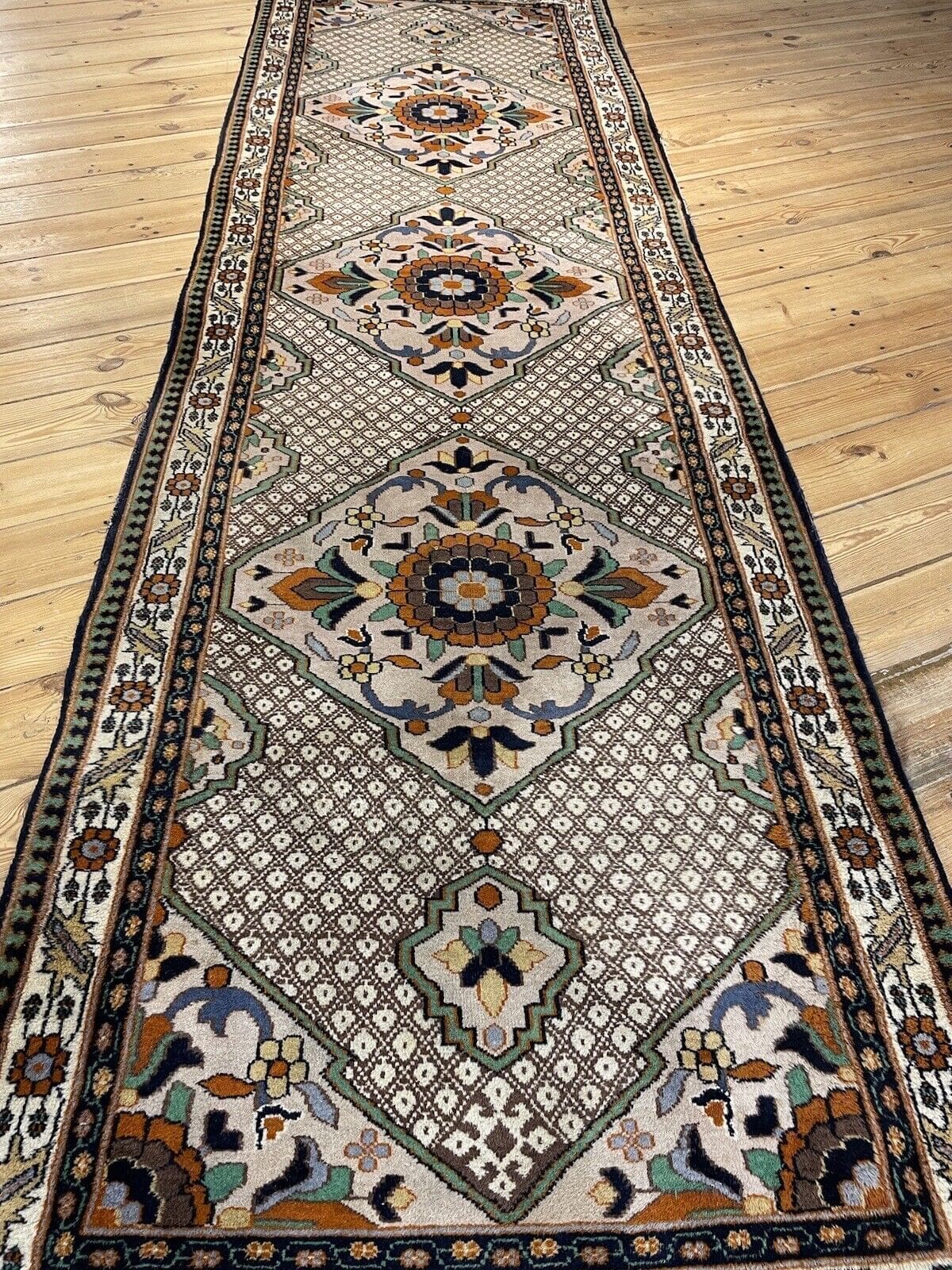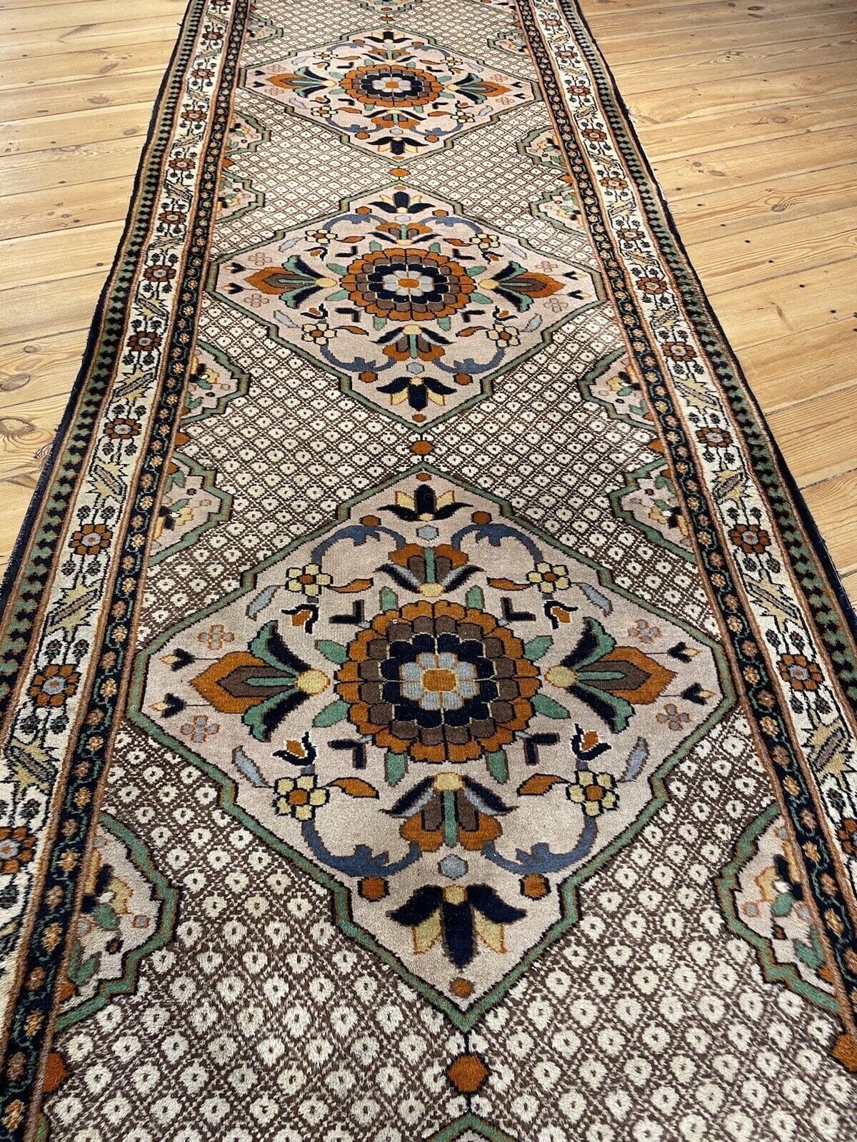 Antiker anatolischer Perserteppich 305×92 cm – 90 Jahre alt, Dekorierte Ecken, mehrere Medaillons, handgeknüpft Läufer