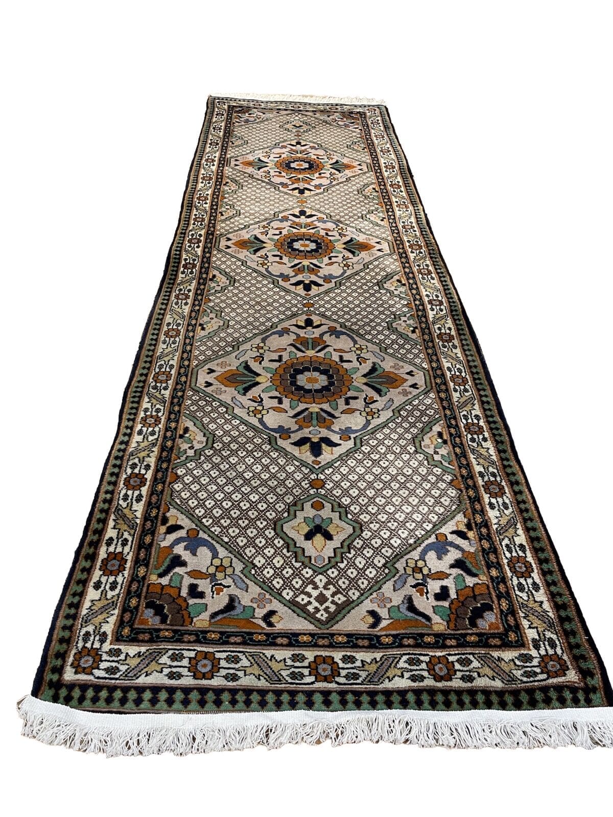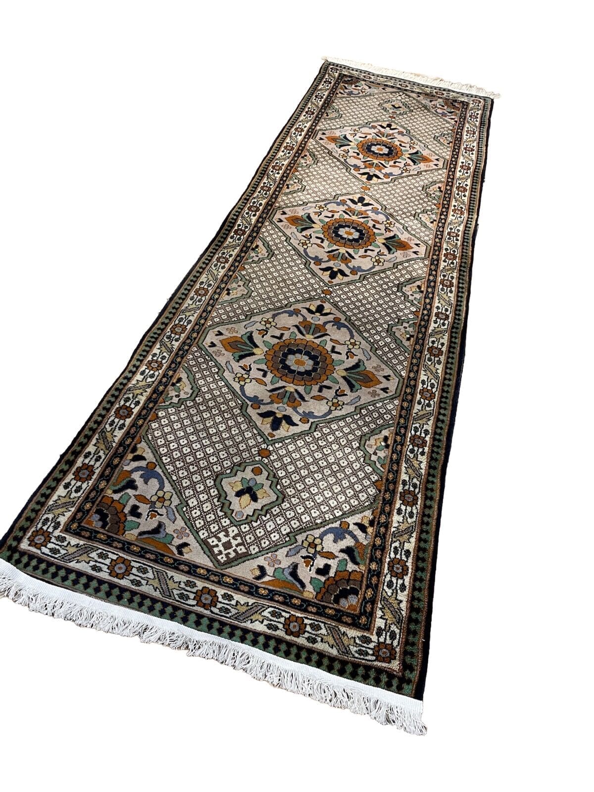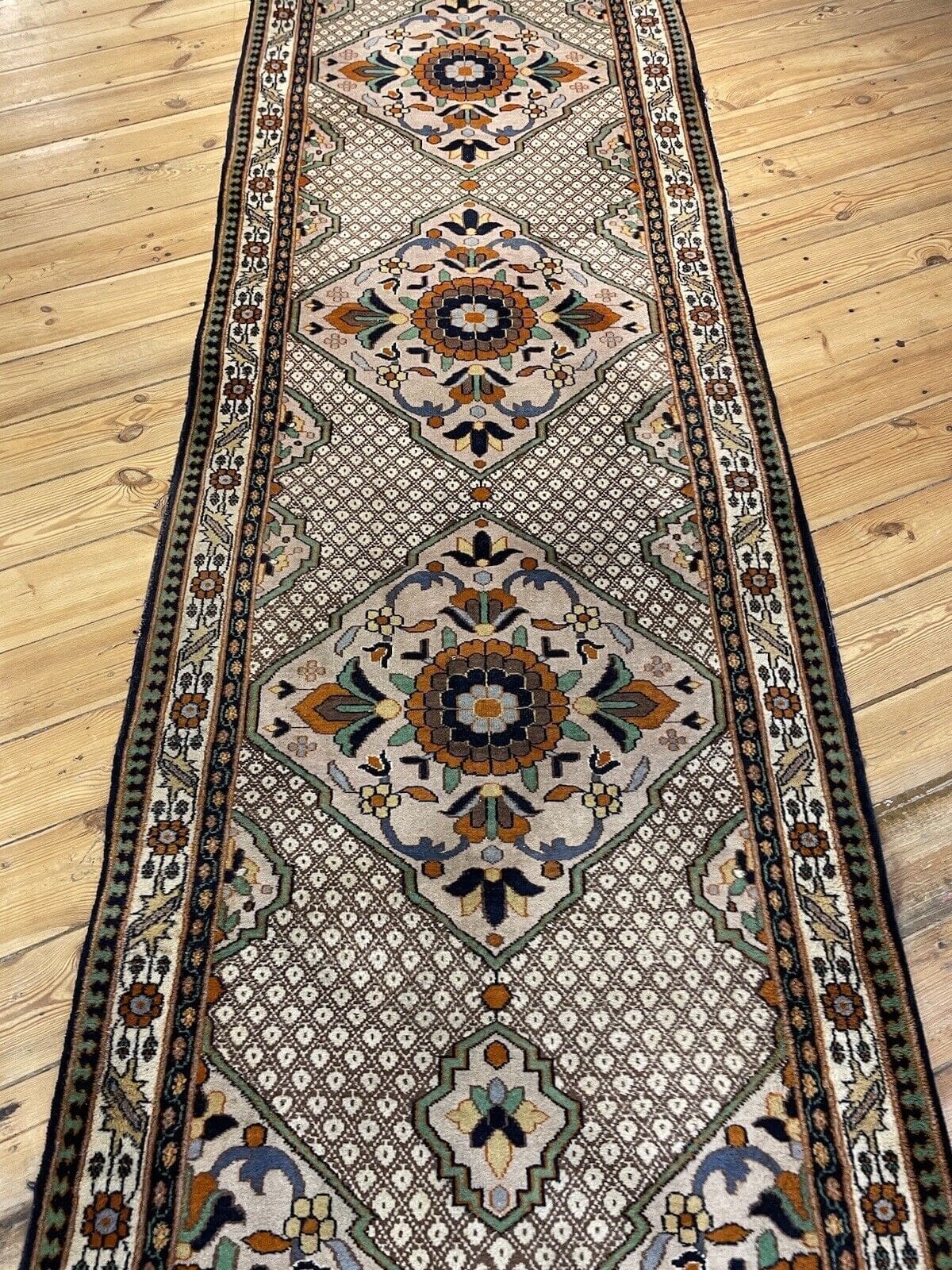 Antiker anatolischer Perserteppich 305×92 cm – 90 Jahre alt, Dekorierte Ecken, mehrere Medaillons, handgeknüpft Läufer