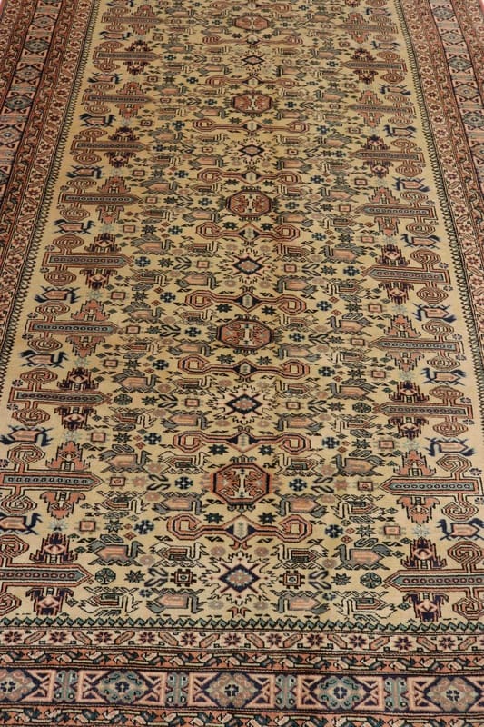 Der Ardebil-Teppich hat seinen Ursprung in der gleichnamigen Stadt Ardebil, die im Nordwesten Irans liegt. Diese Region ist bekannt für ihre reiche Teppichknüpftradition, die bis ins 16. Jahrhundert zurückreicht. Ardebil war nicht nur ein Zentrum der Kunst und Kultur, sondern auch ein wichtiger Handelsplatz, was zur Verbreitung und Popularität der dort hergestellten Teppiche beitrug. Die Stadt ist berühmt für ihre prächtigen Teppiche, die oft mit aufwendigen Mustern und lebendigen Farben gestaltet sind. Das Herati-Muster, das sich auf diesem Teppich präsentiert, ist eines der bekanntesten und beliebtesten Muster der persischen Teppichkunst. Es symbolisiert Fruchtbarkeit und Wohlstand und wird oft als Zeichen der Gastfreundschaft betrachtet.