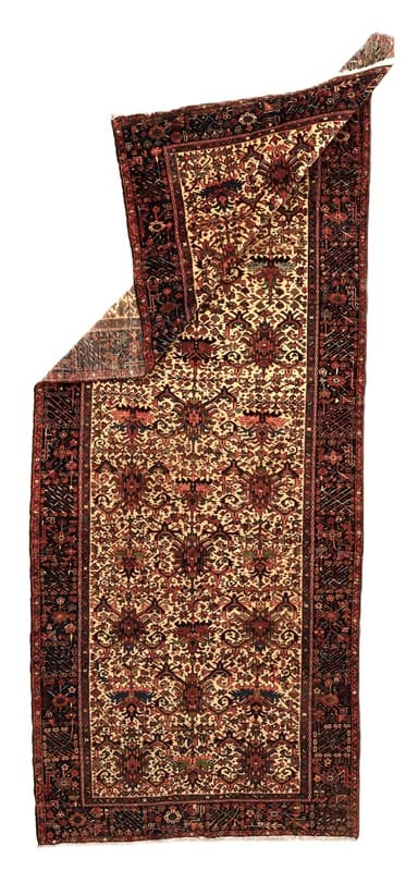 Antiker Heriz Teppich | Knotendichte: 128.000 – 160.000 Knoten/m² | Material: 100 % Wolle | Größe: 382×156 cm | Design: Traditionelle Heriz-Muster | Zustand: Antik | Ursprung: Iran/Persien | Gewicht: ca. 16 kg | Pflege: Professionelle Reinigung empfohlen