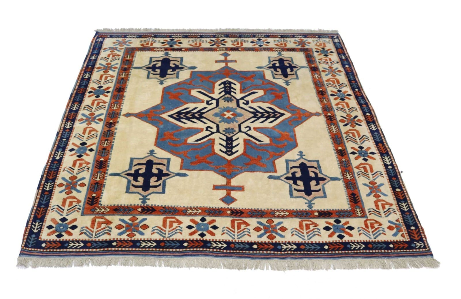 Original Handgeknüpfter Alt Antik Kaukasischer Shirvan Teppich | Größe: 203 x 200 cm | Material: 100% Wolle (Flor und Kette) | Alter: ca. 20 Jahre | Zustand: Gebraucht, gut erhalten | Muster: Geometrische Ornamente mit Medaillons | Ursprung: Russland | Besonderheiten: Handgeknüpft, antirutsch, für Fußbodenheizung geeignet, leicht zu reinigen | Epochen: Mitte des 20. Jahrhunderts (1941-1969) | Stil: Antik, orientalisch | Farbe: Mehrfarbig | Dicke: ca. 10 mm | Gewicht: ca. 15 kg