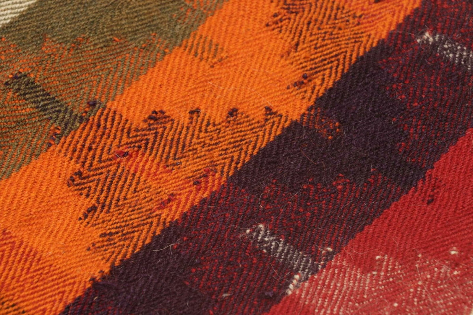 Darüber hinaus kann der Kelim sowohl als Bodenbelag als auch als dekoratives Wandbehang verwendet werden. Seine Robustheit und der ansprechende Vintage-Look machen ihn zu einem perfekten Hingucker in jedem Zuhause. Mit der richtigen Pflege hat dieser Teppich das Potenzial, über Generationen hinweg zu bestehen.