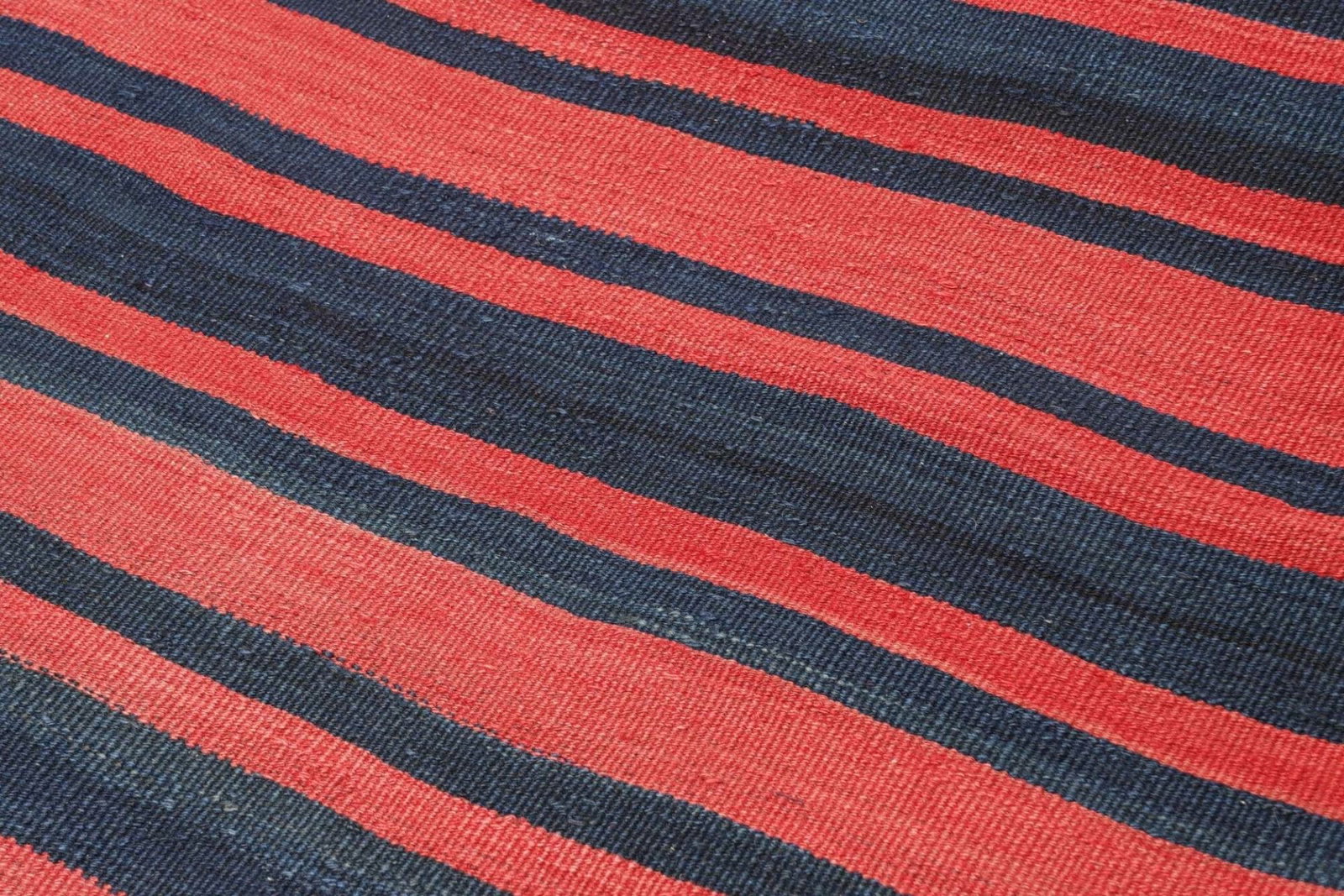 Dieser Kelim Teppich stammt aus einer Region, die für ihre tief verwurzelten Teppichtraditionen bekannt ist. Die Kunst des Teppichwebens hat in dieser Region eine lange Geschichte, die bis ins Mittelalter zurückreicht. Familienbetriebe geben ihr Wissen von Generation zu Generation weiter. Die Verwendung von Naturfarben, die in Handarbeit gewonnen werden, trägt zu einem einzigartigen und authentischen Aussehen des Teppichs bei.