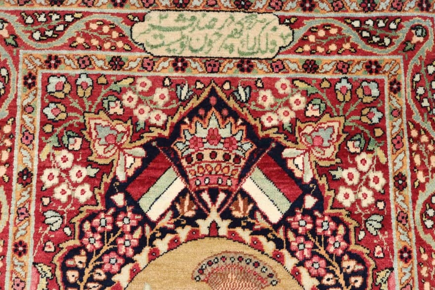 Die Knotendichte des Teppichs trägt zu seiner Detailtreue bei. Jedes Muster wird sorgfältig über mehrere Wochen oder sogar Monate hinweg geknüpft, was die Einzigartigkeit und Exklusivität dieses Kunstwerks unterstreicht.