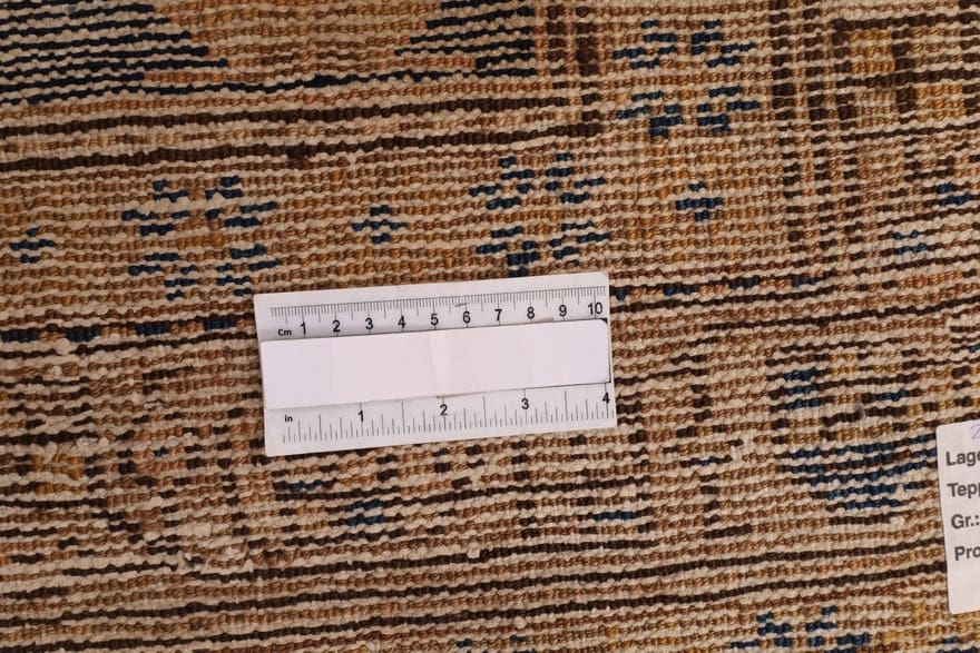 Die hohe Knotendichte von 128.000 Knoten pro Quadratmeter stellt sicher, dass dieser Teppich sowohl in der Langlebigkeit als auch in der Detailgenauigkeit seines Musters heraussticht. Ein weiterer besonderer Aspekt ist der Zustand des Teppichs; er wurde sorgfältig gepflegt und zeigt somit nur minimale Gebrauchsspuren, die den antiken Charme nur unterstreichen. Diese Attribute machen den Teppich zu einer ausgezeichneten Wahl für jeden, der Wert auf Qualität und Geschichte legt.