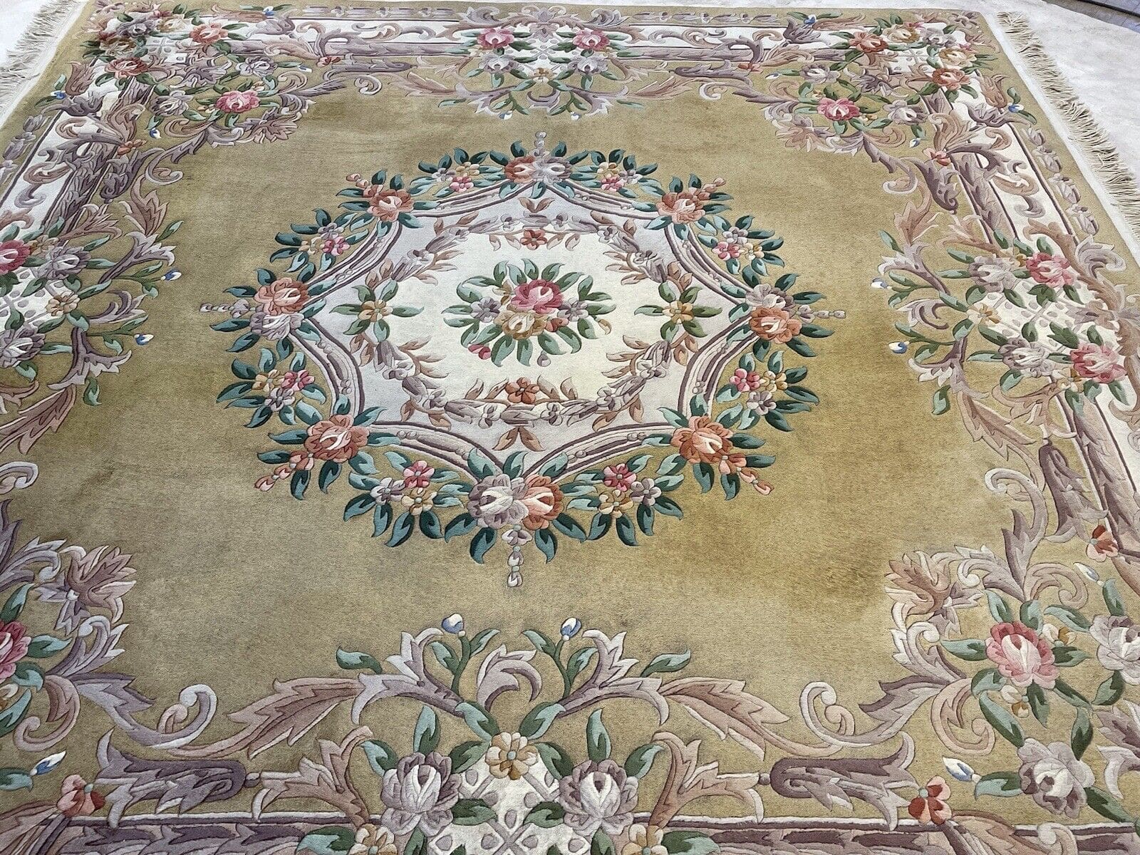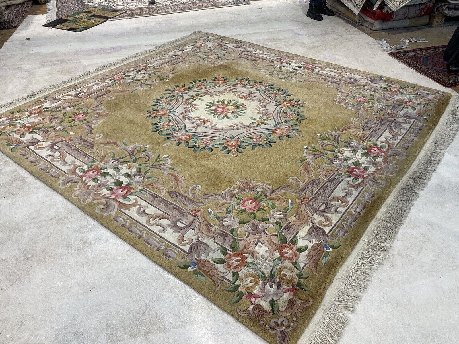 Antiker Peking Perserteppich 265×265 cm – Gold/Gelb, Top Qualität, besonders weiche Schurwolle, sehr dekorativ, handgeknüpft