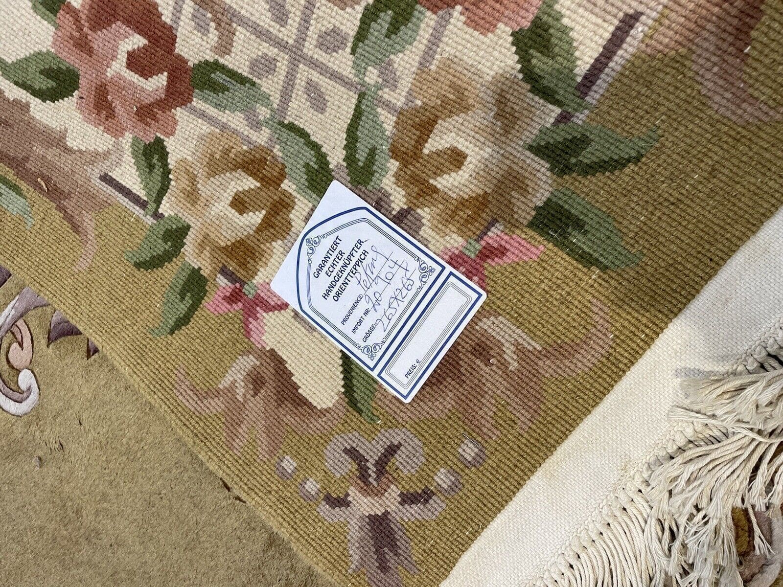Die Muster auf Peking Teppichen sind oft von traditionellen chinesischen Designs inspiriert, die florale und geometrische Elemente kombinieren. Diese Muster haben kulturelle Bedeutung und sind das Ergebnis jahrhundertelanger Handwerkstradition.