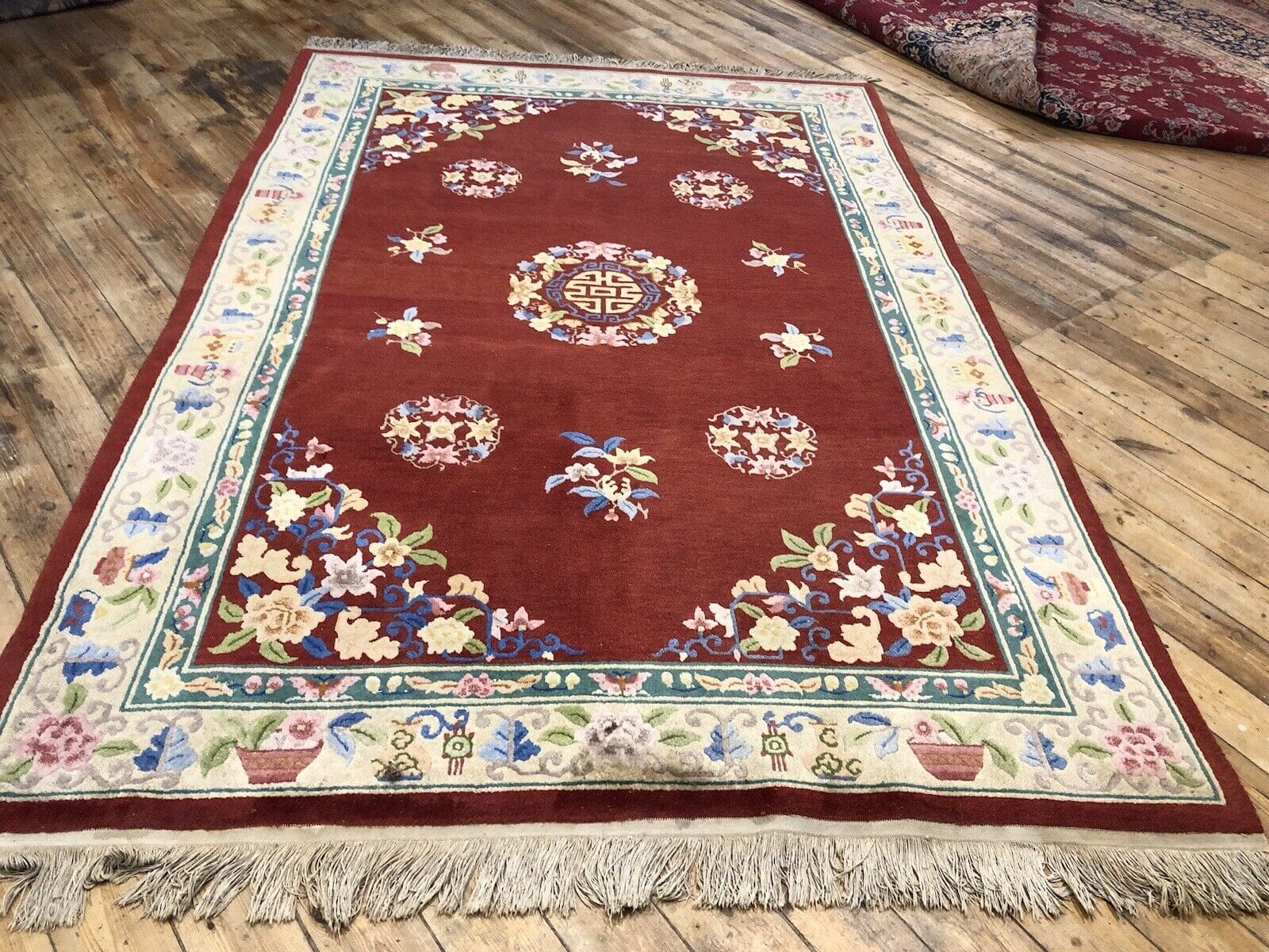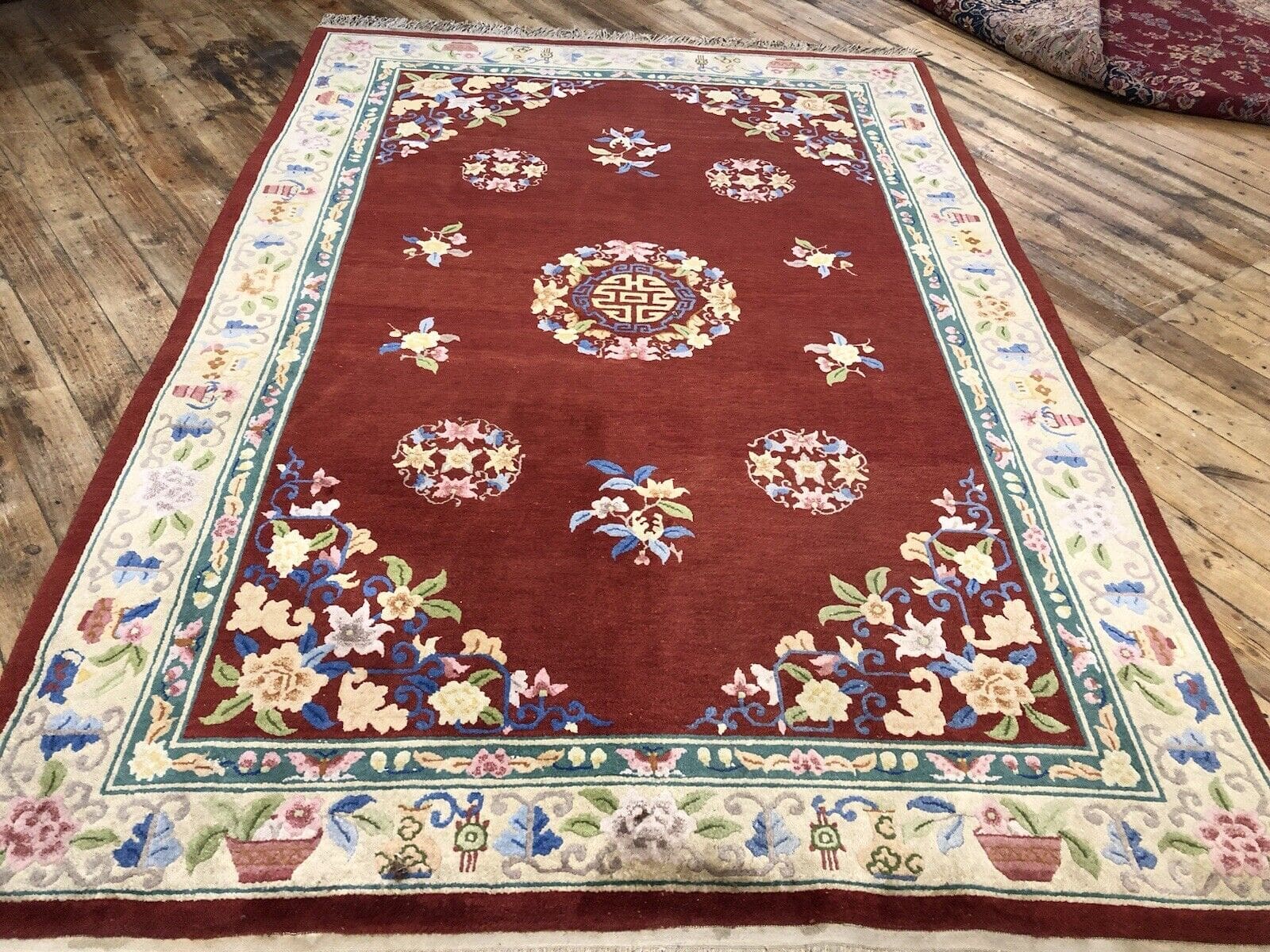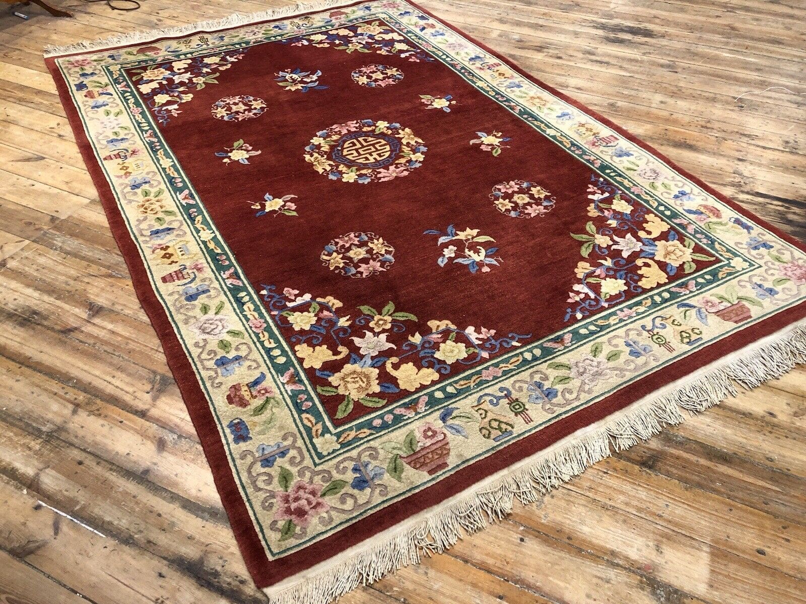 Antiker Peking Teppich | Handgeknüpft im klassischen Gobelin-Design | Knotendichte: Hochflorig | Material: Wolle und Baumwolle | Größe: 290×190 cm | Florhöhe: 20 mm | Zustand: Top Zustand | Farbe: Weinrot | Für Fußbodenheizung geeignet | Ursprungsland: China | Epoche: Mitte des 20. Jahrhunderts (1941-1969)