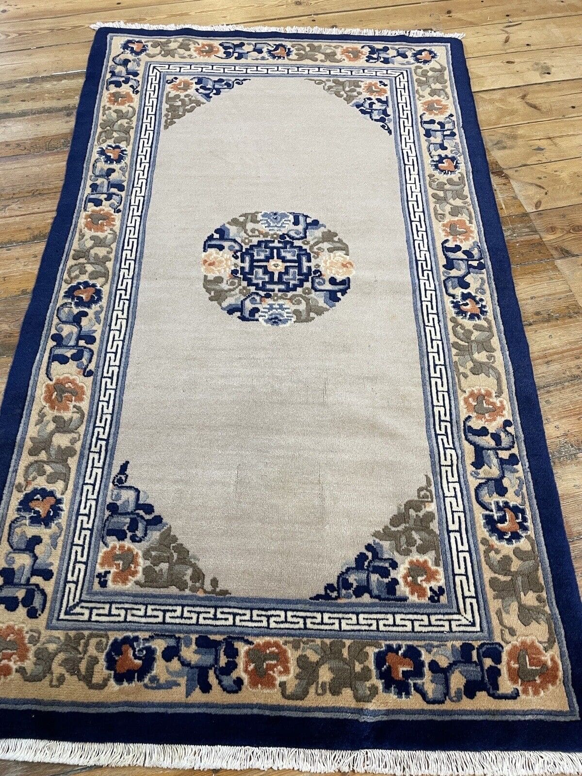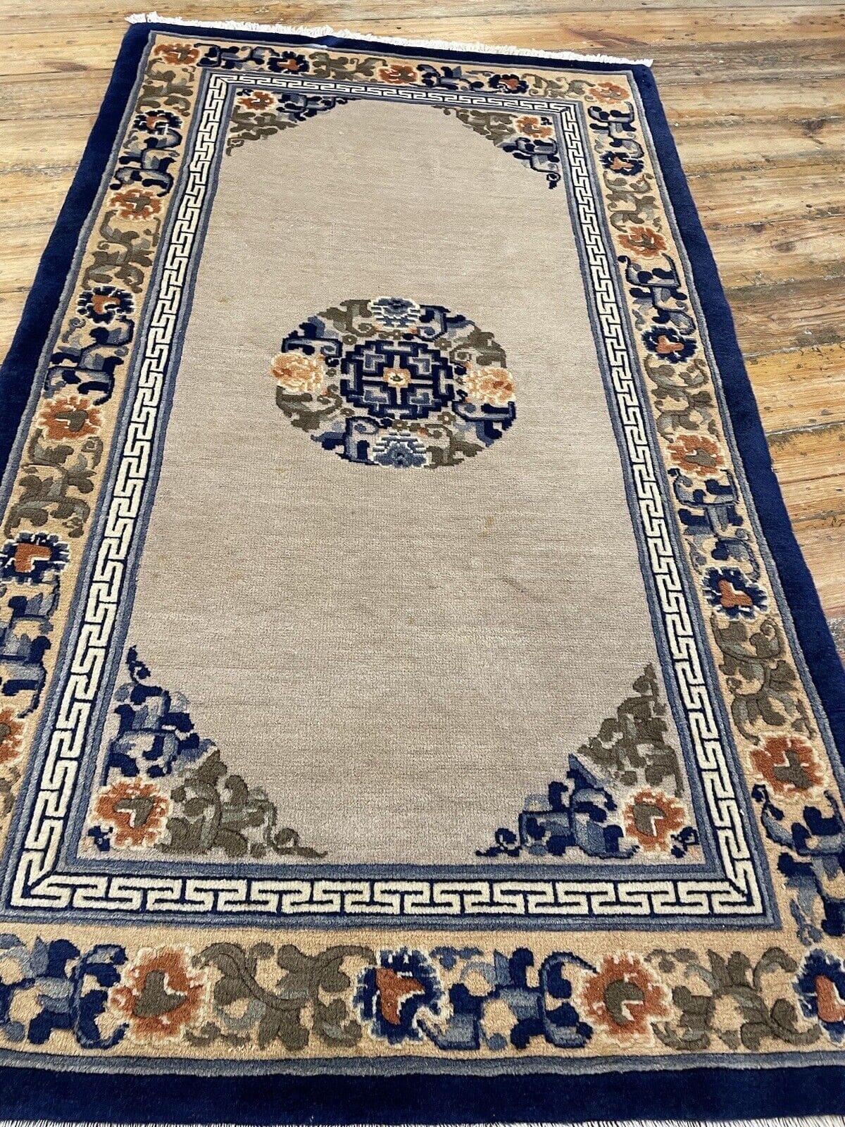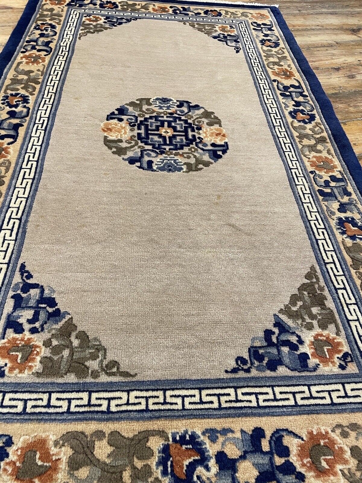 Die Muster auf Ihrem antiken Peking Teppich spiegeln eine lange Tradition der Teppichknüpfkunst wider. Oft sind sie von der Natur, floralen Motiven und geometrischen Formen inspiriert, die in der orientalischen Kultur symbolische Bedeutungen tragen.